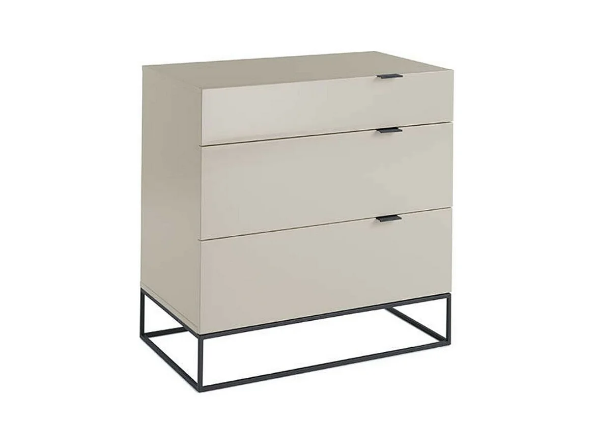 Commode 3 tiroirs bois laqué et acier noir Ciora-Couleur Dune