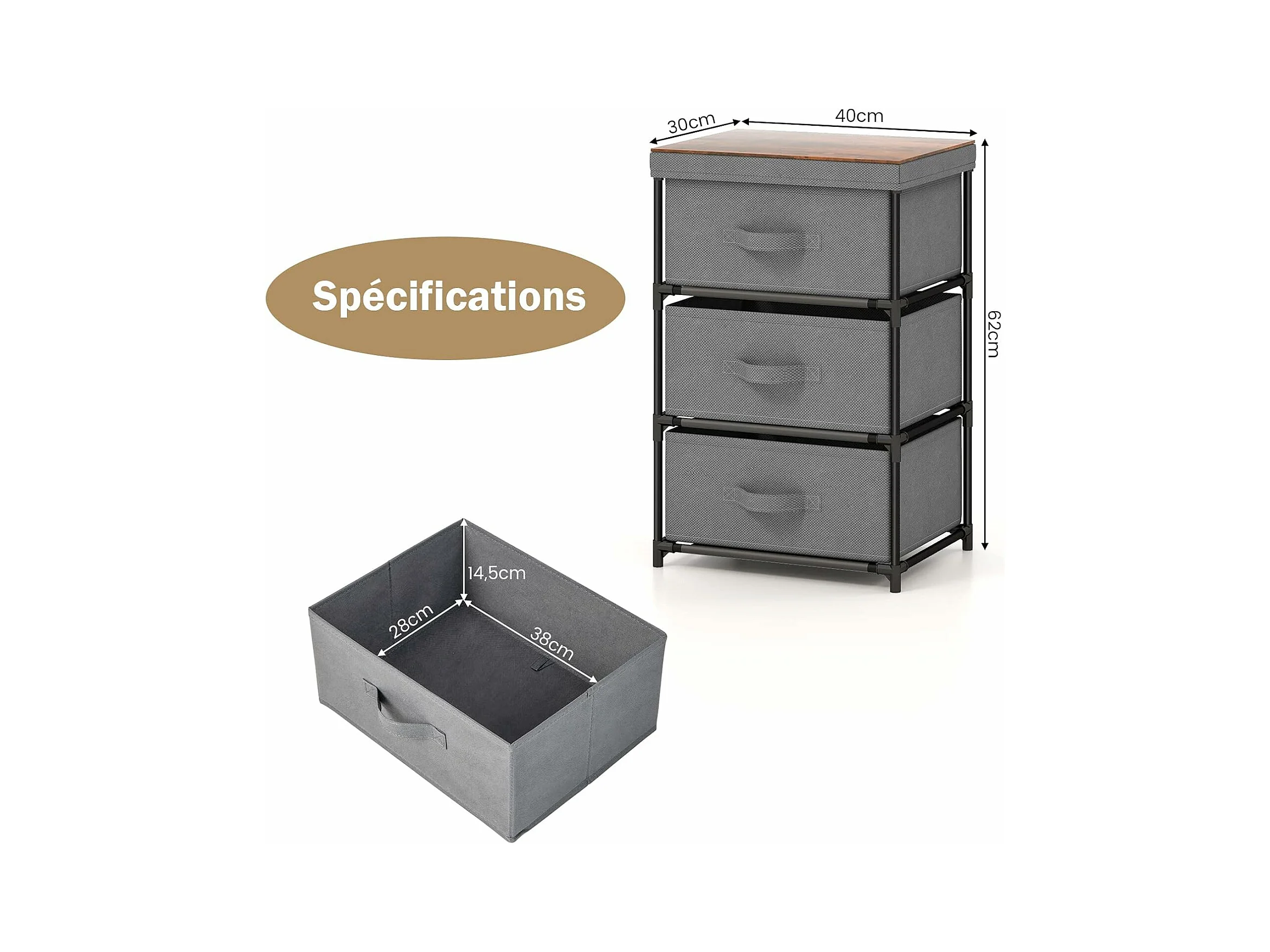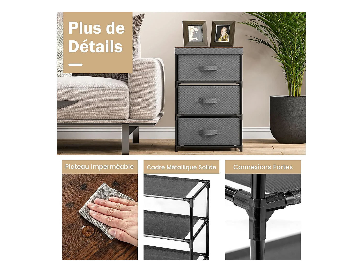 Commode 3 Tiroirs en Tissu, Commode Chambre Adulte avec Cadre en Métal, Meuble Tiroir Rangement pour Chambre, Industriel, 20 x 48 x 76 cm (Gris)