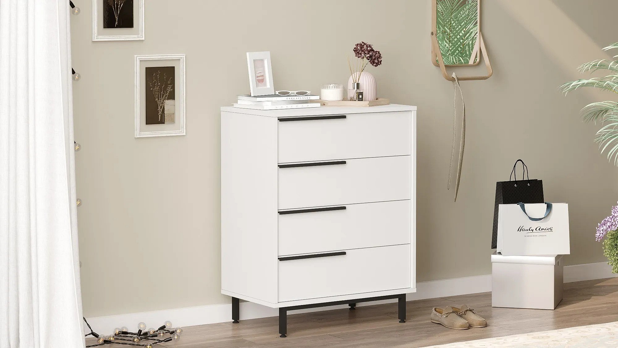 Commode 4 tiroirs bois et rotin Zenax 75cm-Couleur Blanc