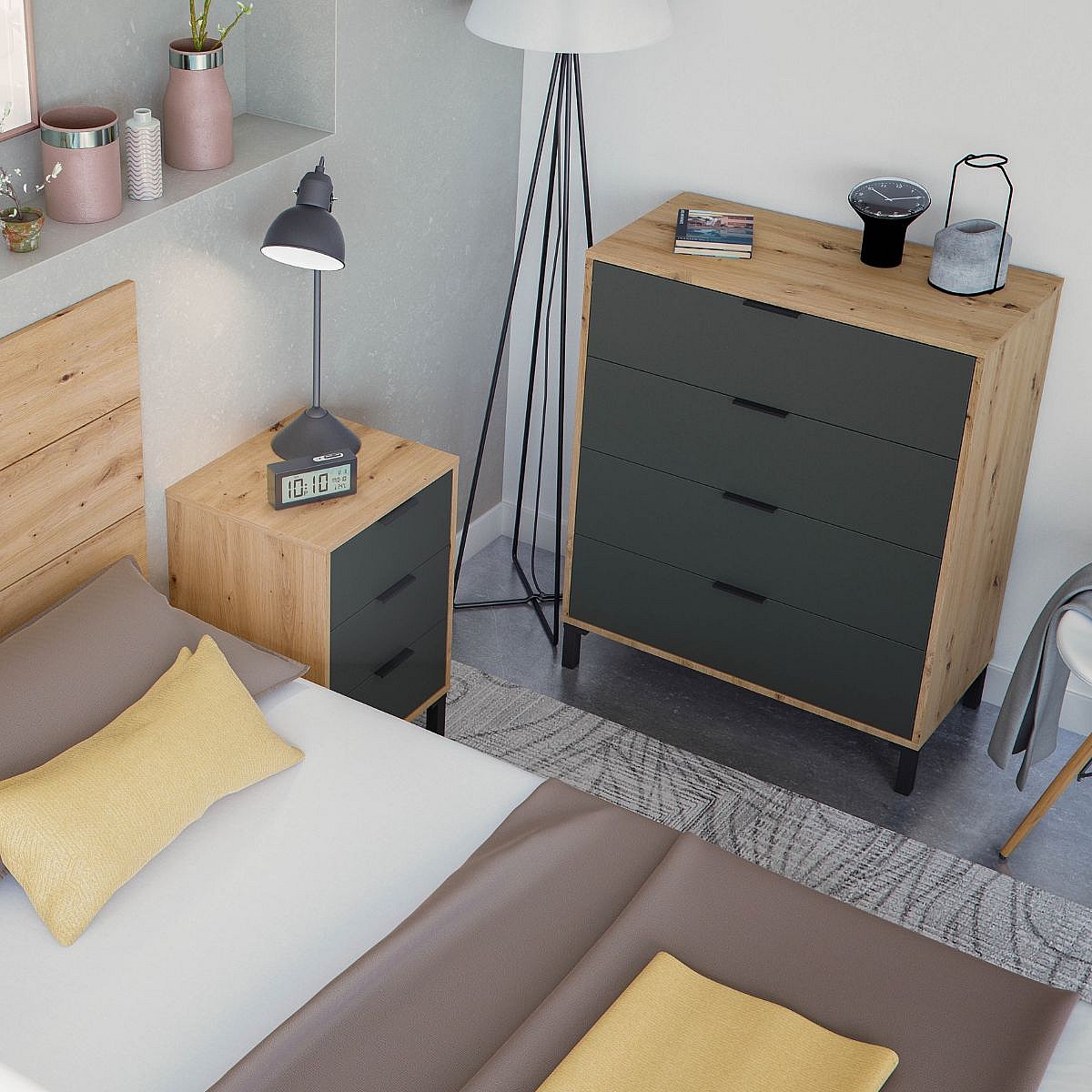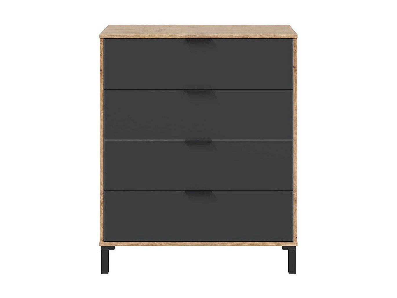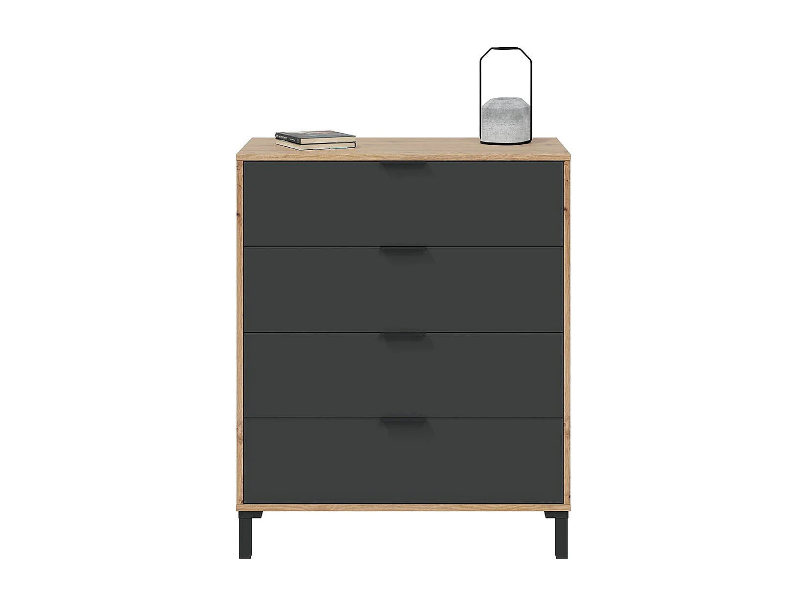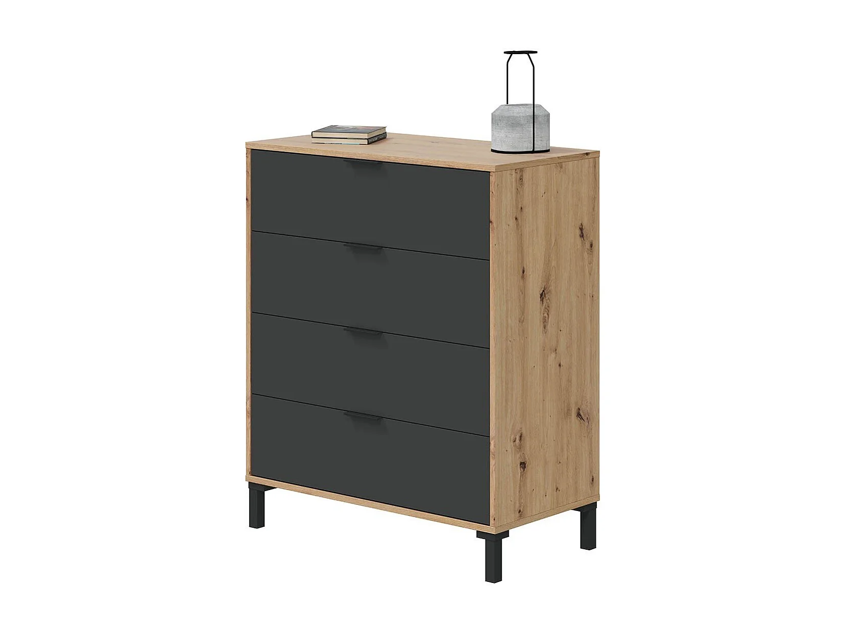 Commode 4 tiroirs décor chêne noueux et gris anthracite - L77,5 cm