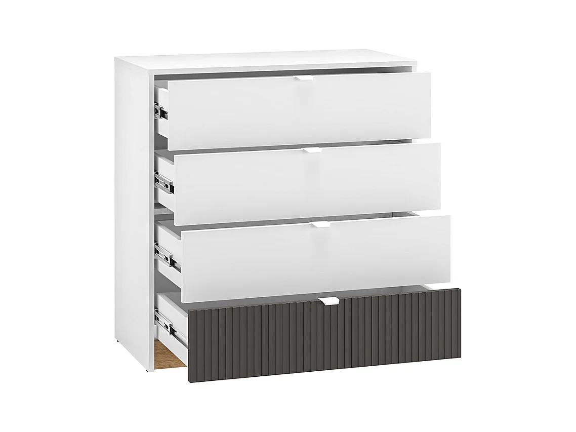 Commode 4 tiroirs Darrel Blanc laqué et Bois