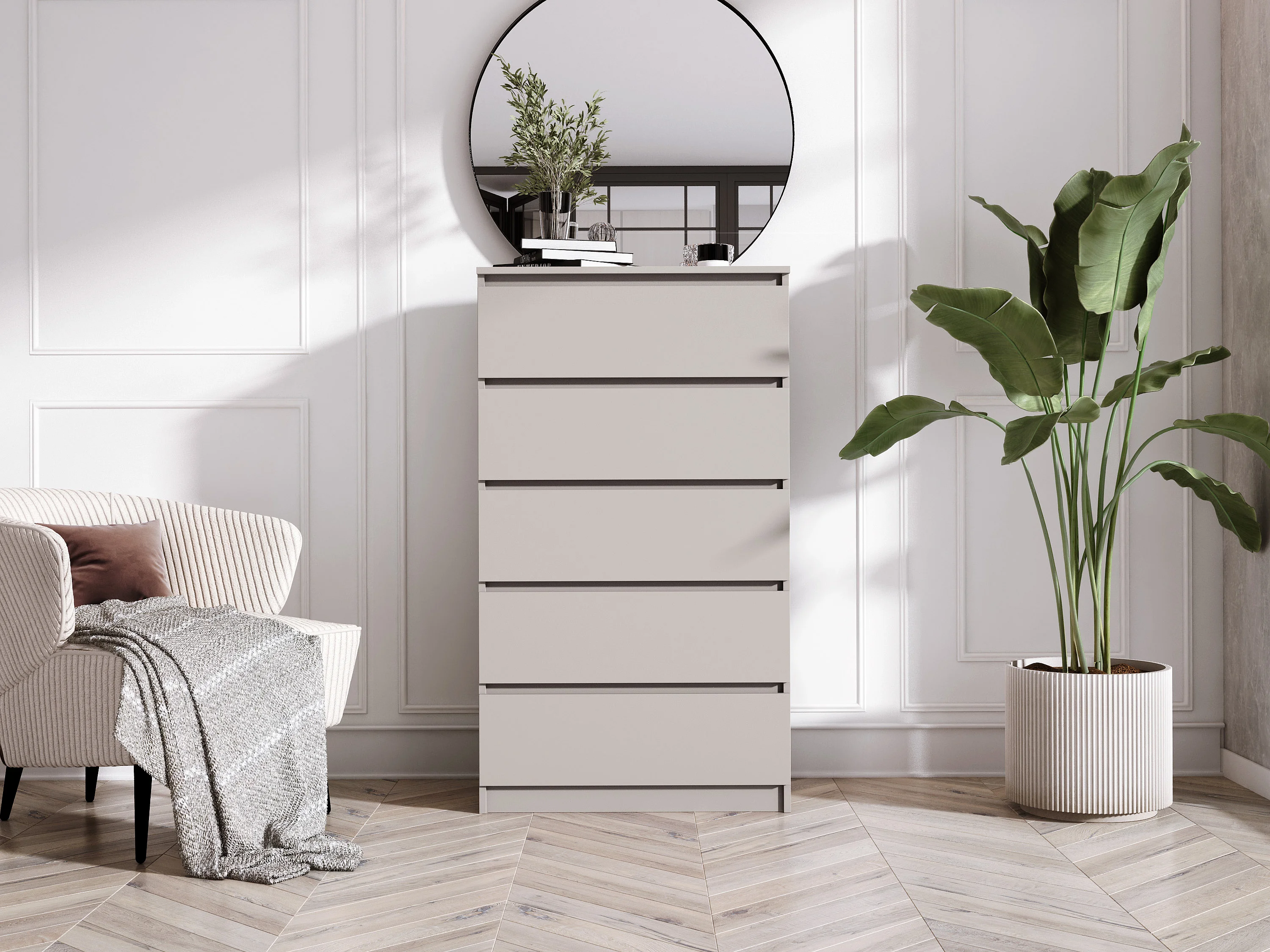 Commode 5 tiroirs, cachemire, 70 x 124 x 39 cm
