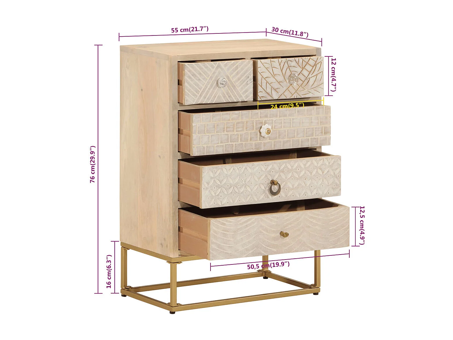 Commode 55x30x76 cm bois massif de manguier et fer
