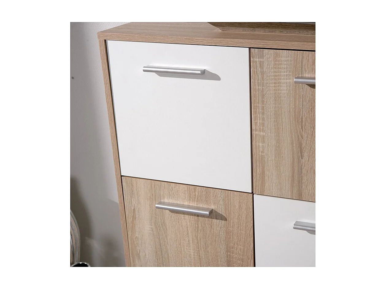 Commode 6 Portes "Victoria" 115cm Blanc & Naturel