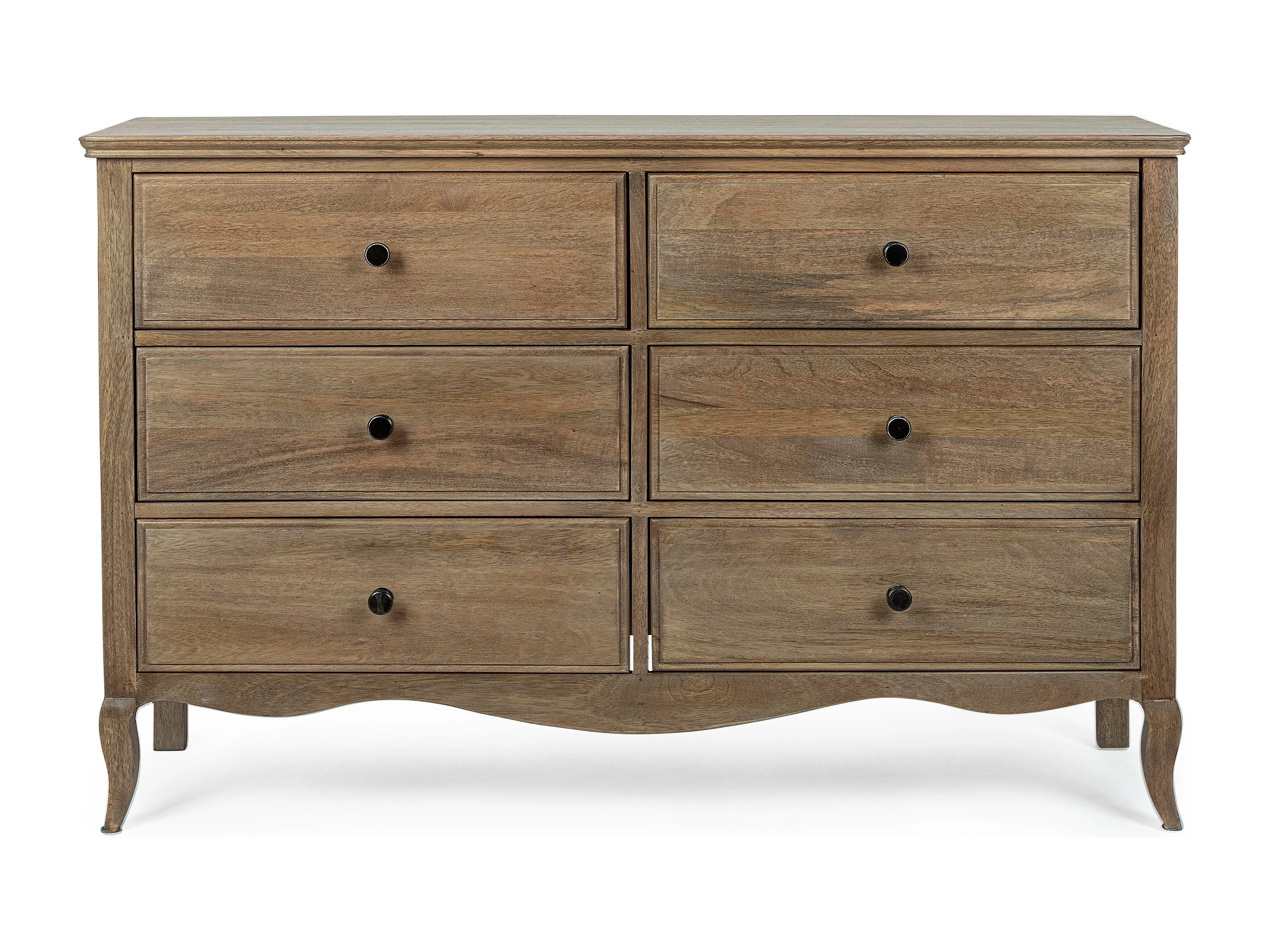 Commode 6 tiroirs bois de manguier massif finition naturelle Domika 125cm