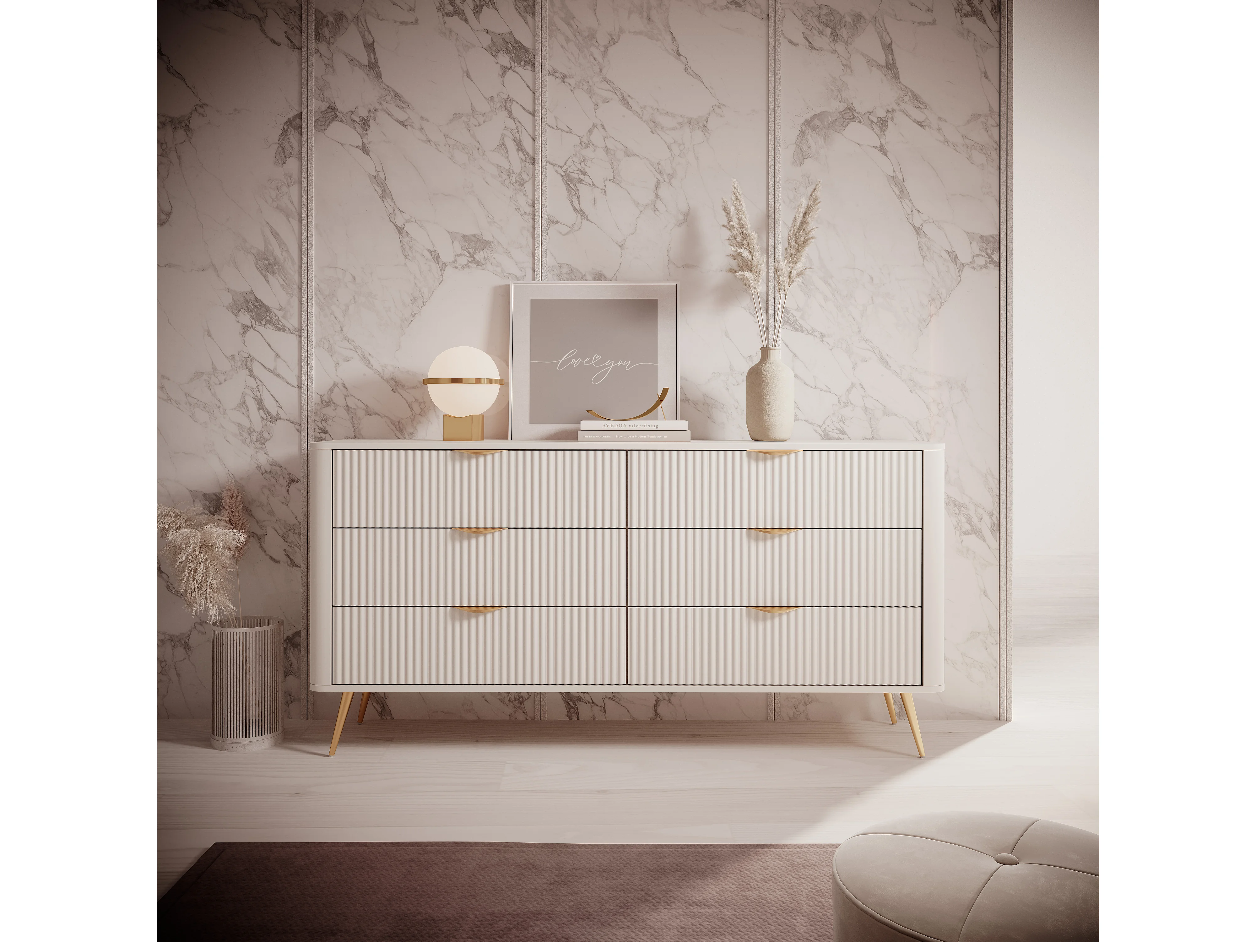 Commode : 6 Tiroirs, Beige, 163,2 x 38 x 81,2 cm