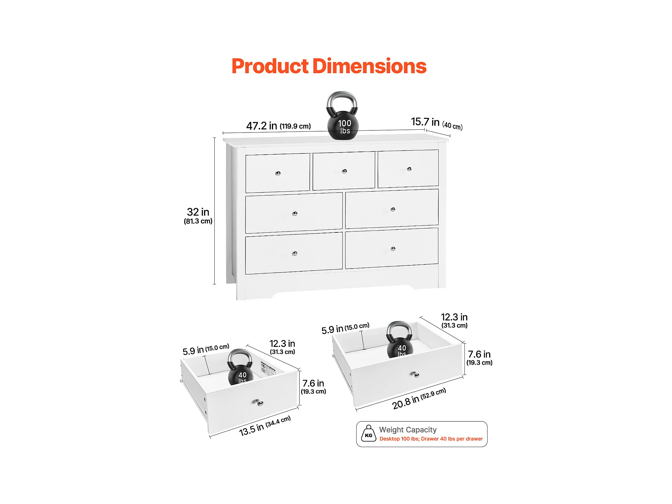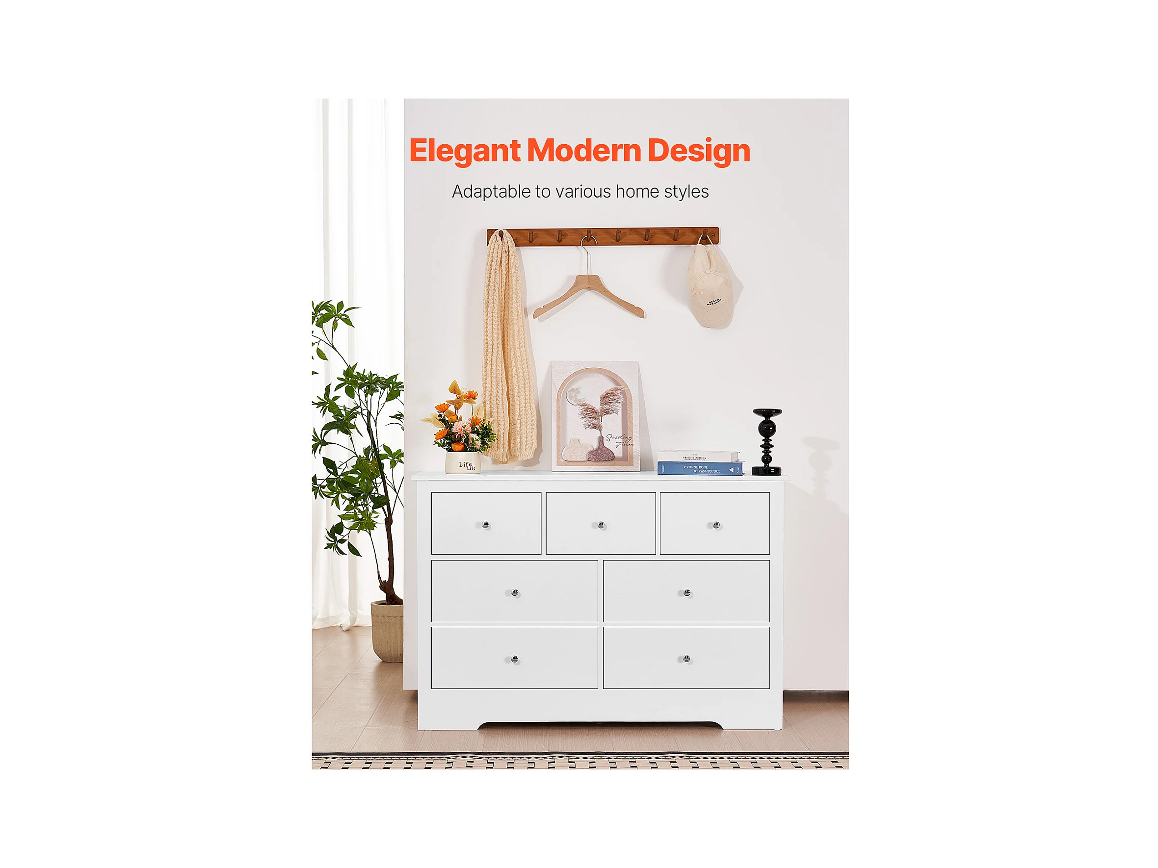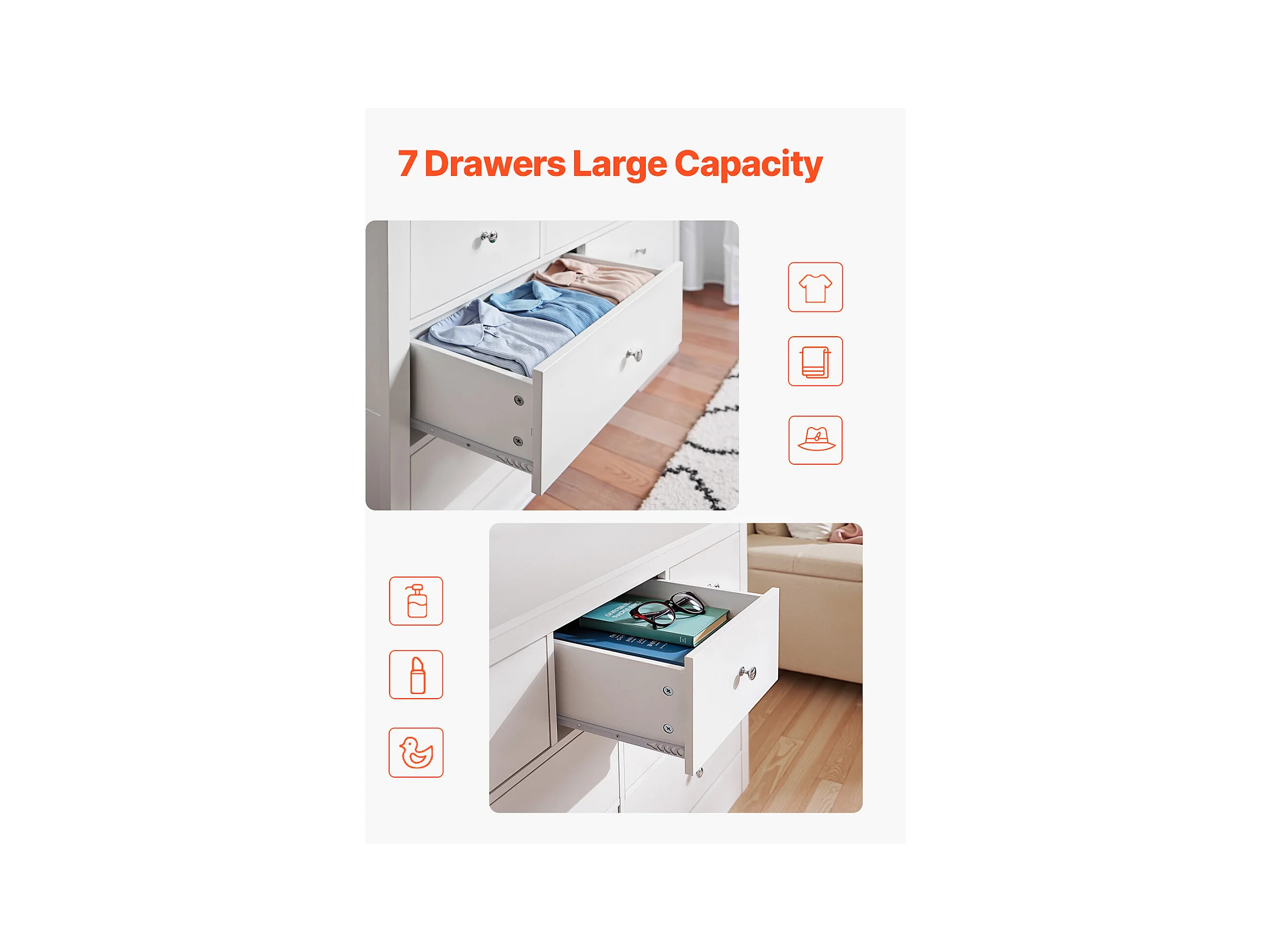 Commode 7 Tiroirs SucceBuy, Bois, Système Coulissant/Anti-Basculement, Style Moderne, Meuble TV/Armoire, Salon/Couloir/Chambre/Entrée, Blanc