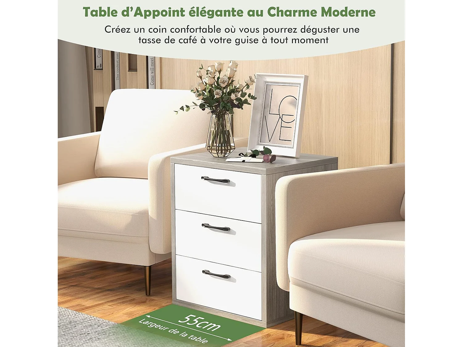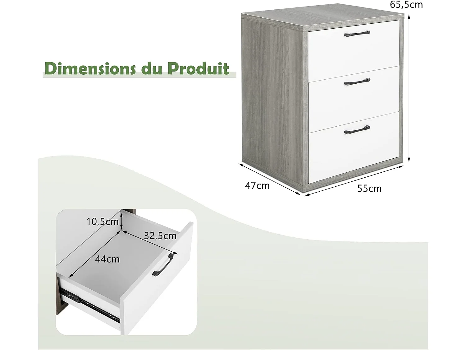 Commode à 3 Tiroirs Coulissants, Caisson de Bureau pour A4/Lettre/Dossiers/Documents, Meuble de Rangement pour Chambre, Salon, 55 x 45 x 66 cm