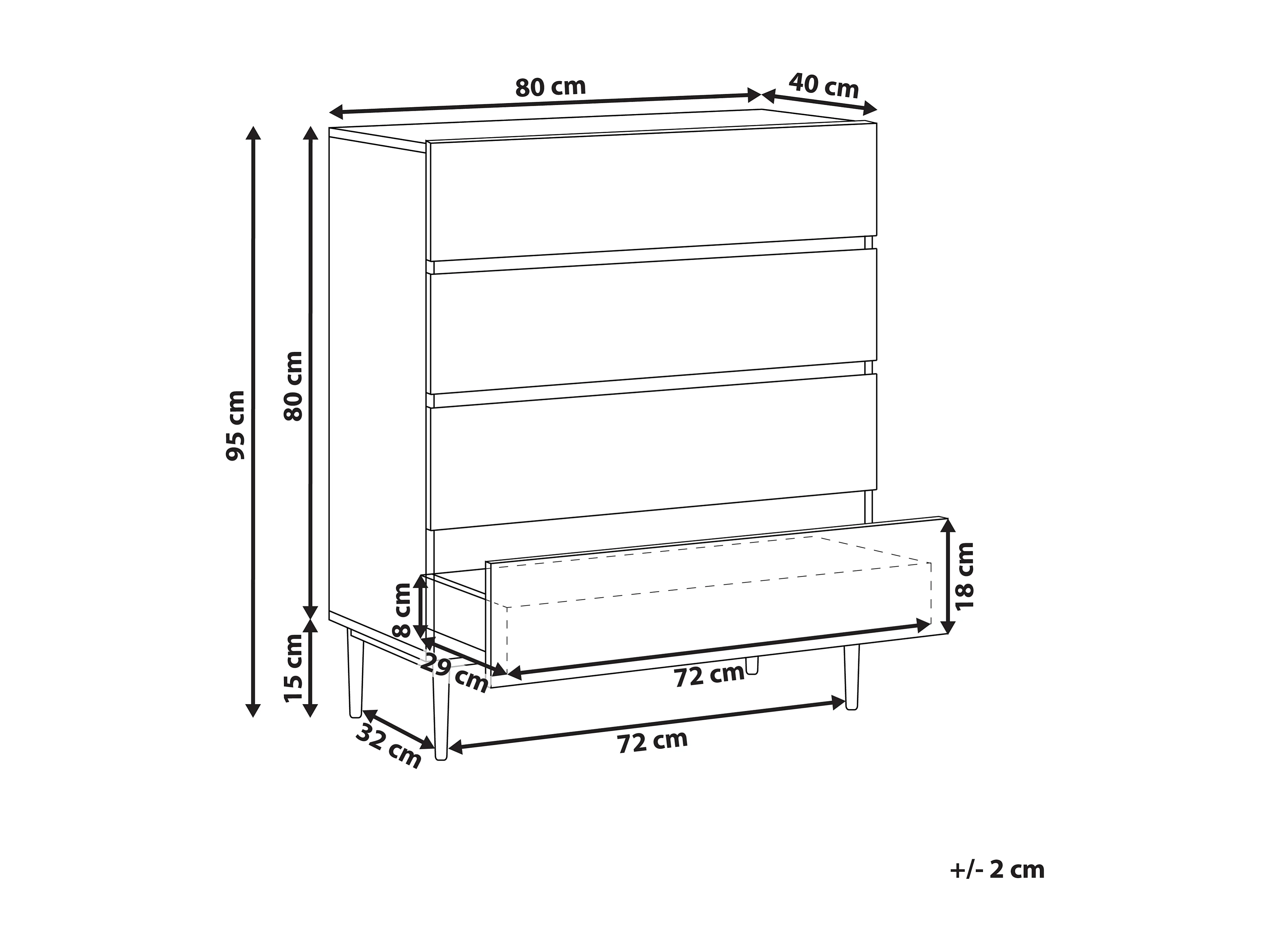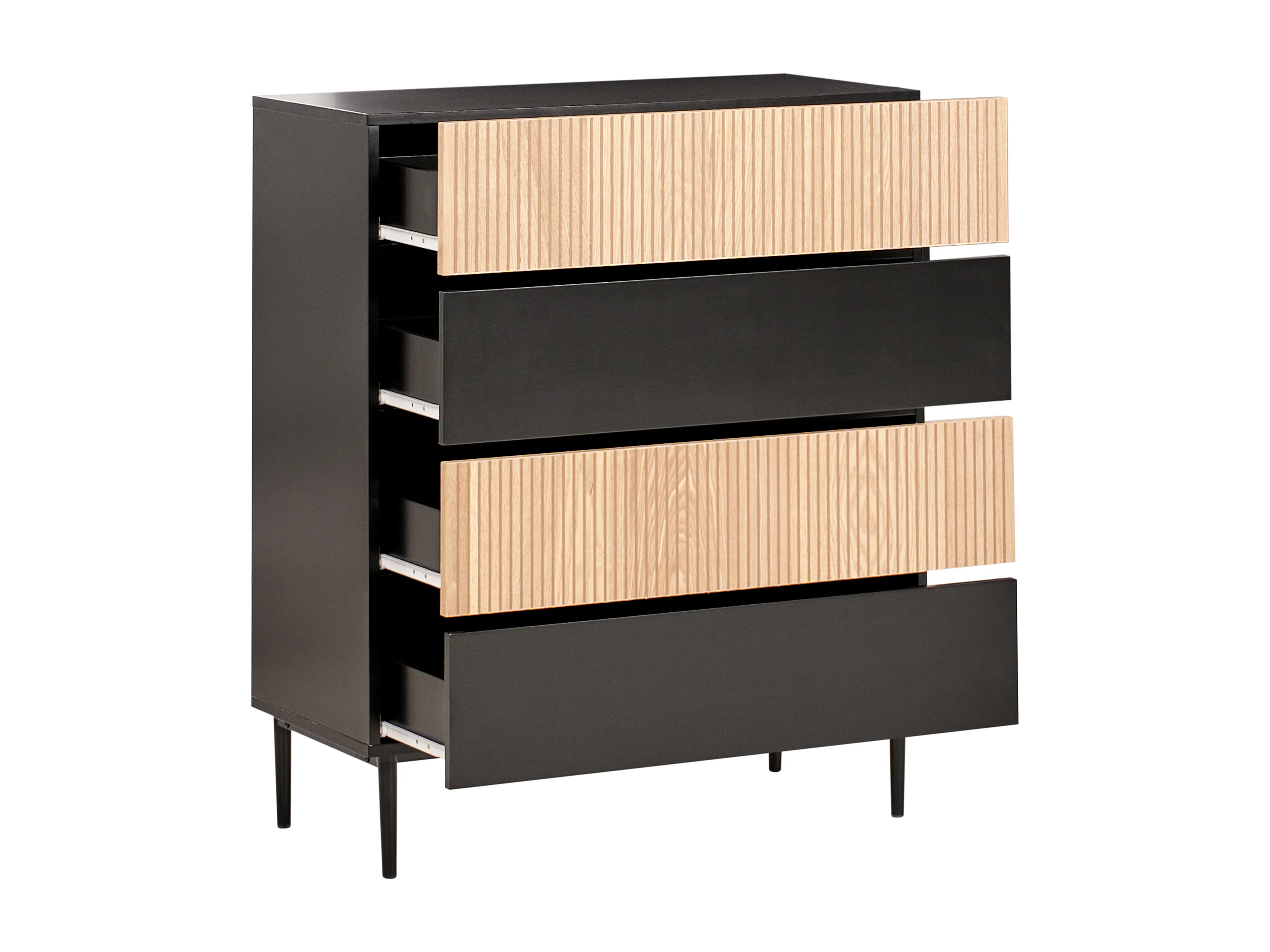 Commode à 4 tiroirs BLYTHE Frêne naturel Noir