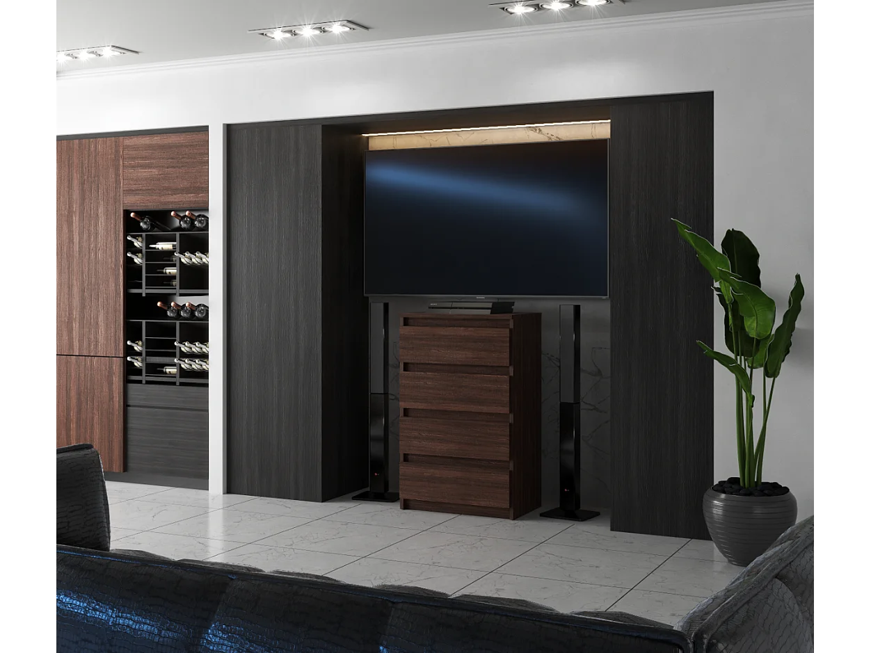 Commode à 4 tiroirs Chêne Wengé 60 CM Meuble TV – Meubles pour salon et chambre