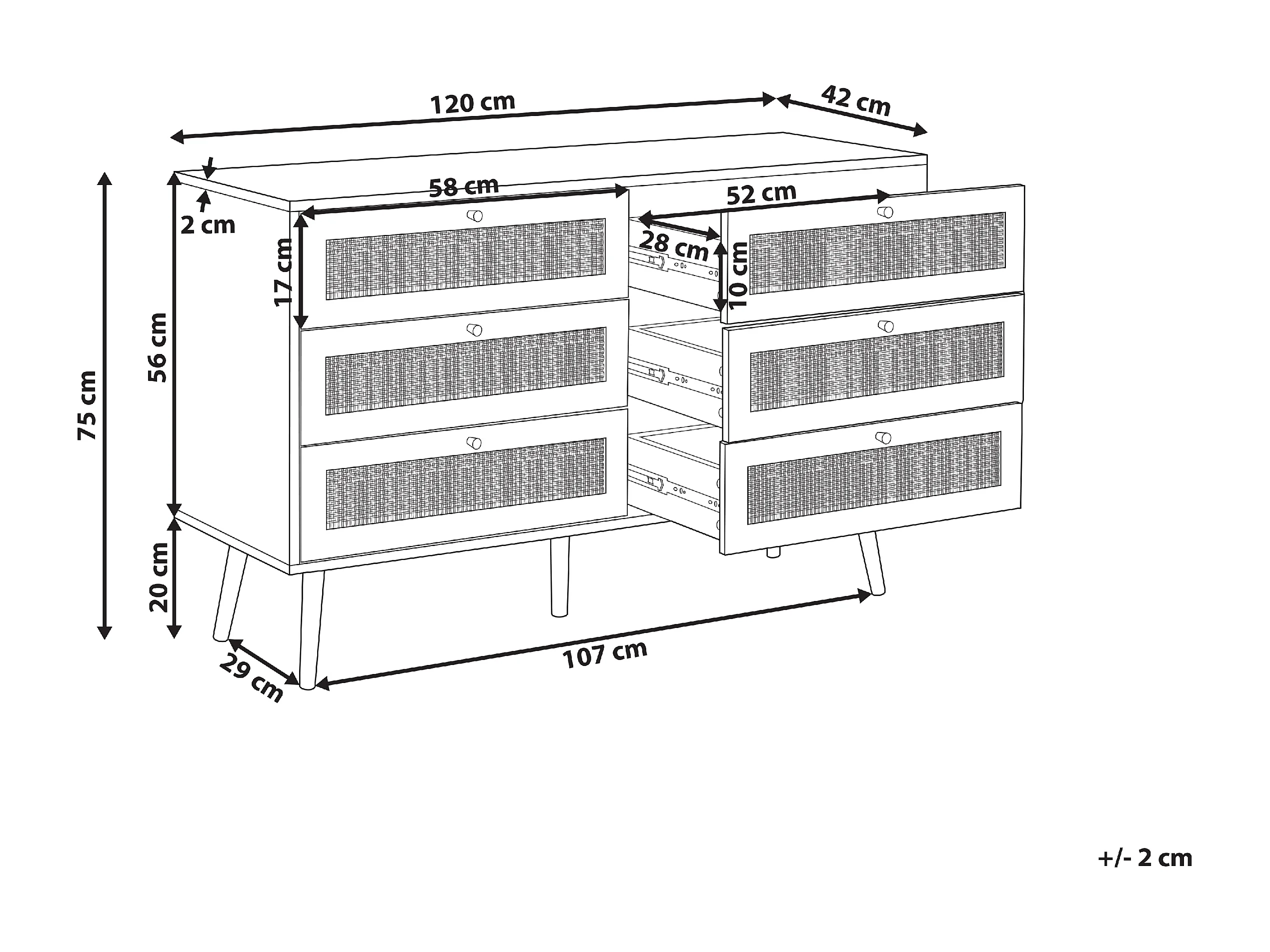 Commode à 6 tiroirs PEROTE Rotin Marron clair