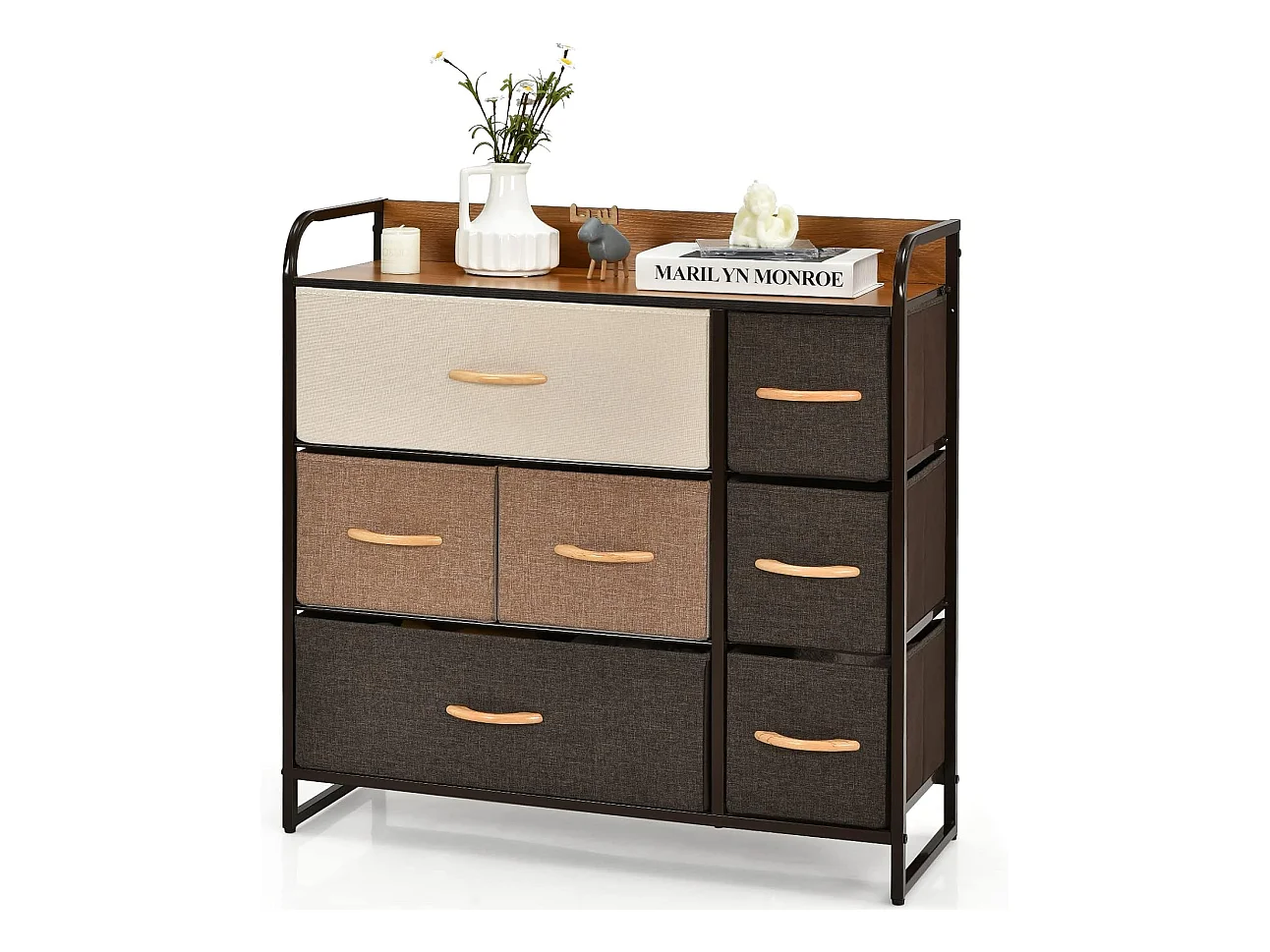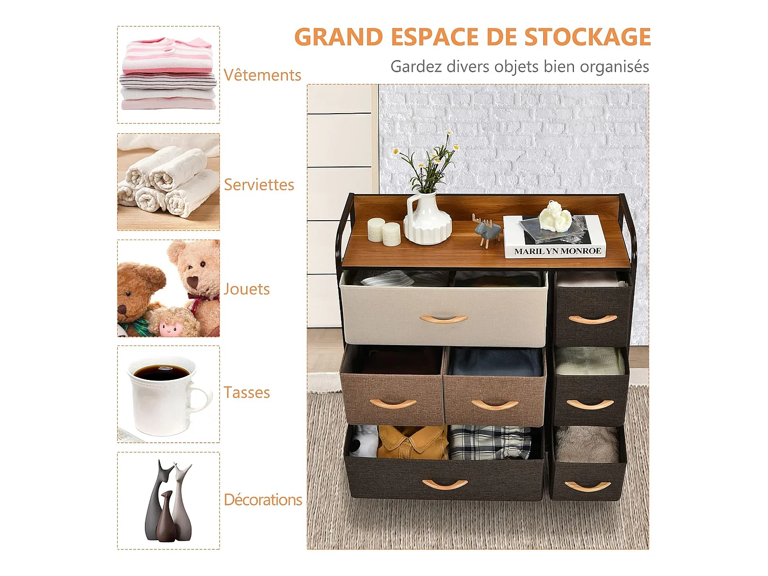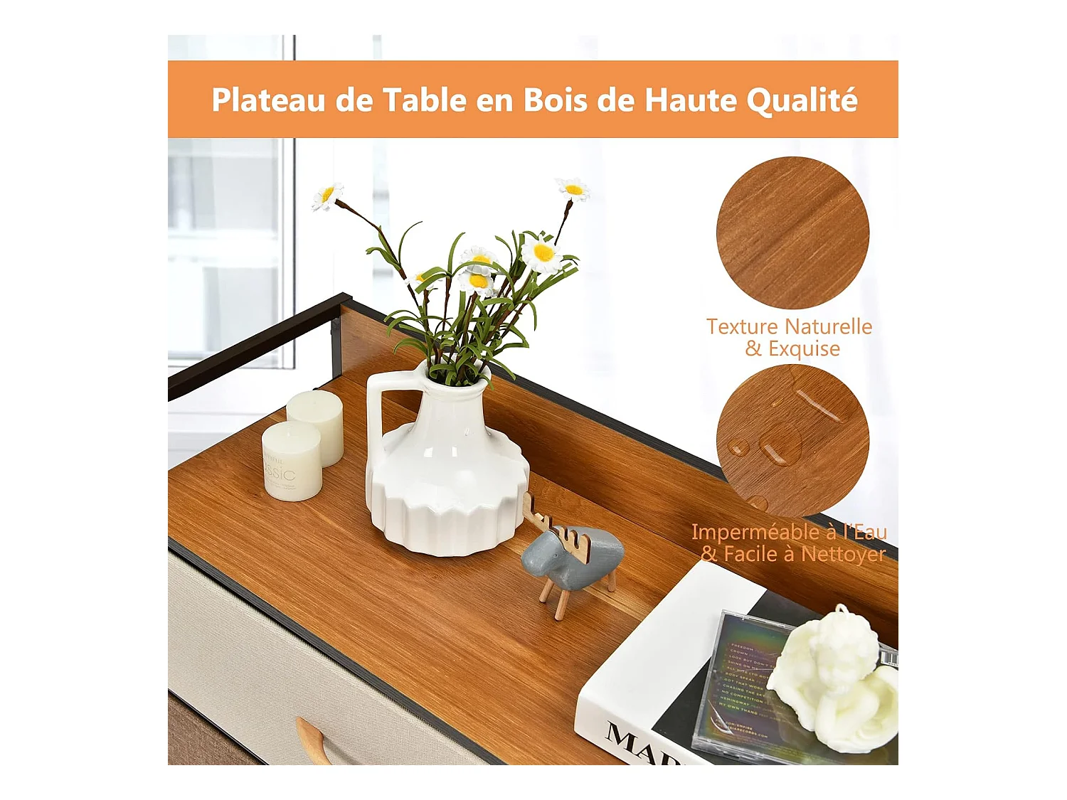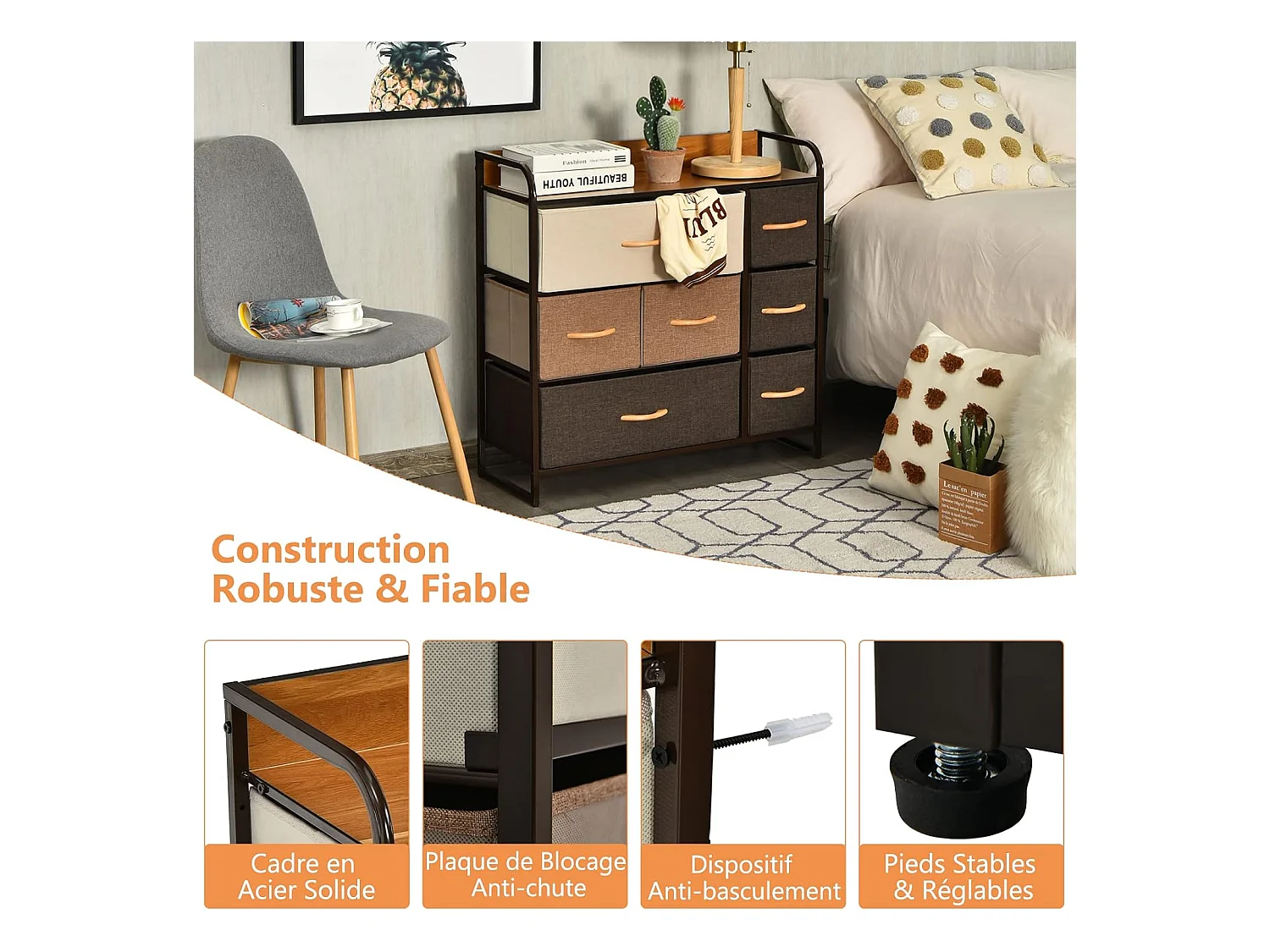 Commode à 7 Tiroirs en Tissu, Poignée en Bois et Cadre en Acier, Meuble de Rangement 80 x 29 x 79 cm (L x l x H ) Structure en Acier Robuste, Kit Anti-basculement Inclus