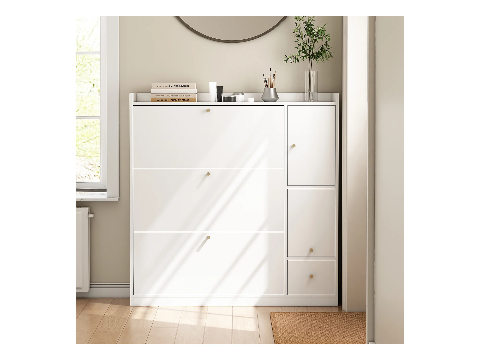 Armoire à chaussures basculante polyvalente avec 3 tiroirs rabattables