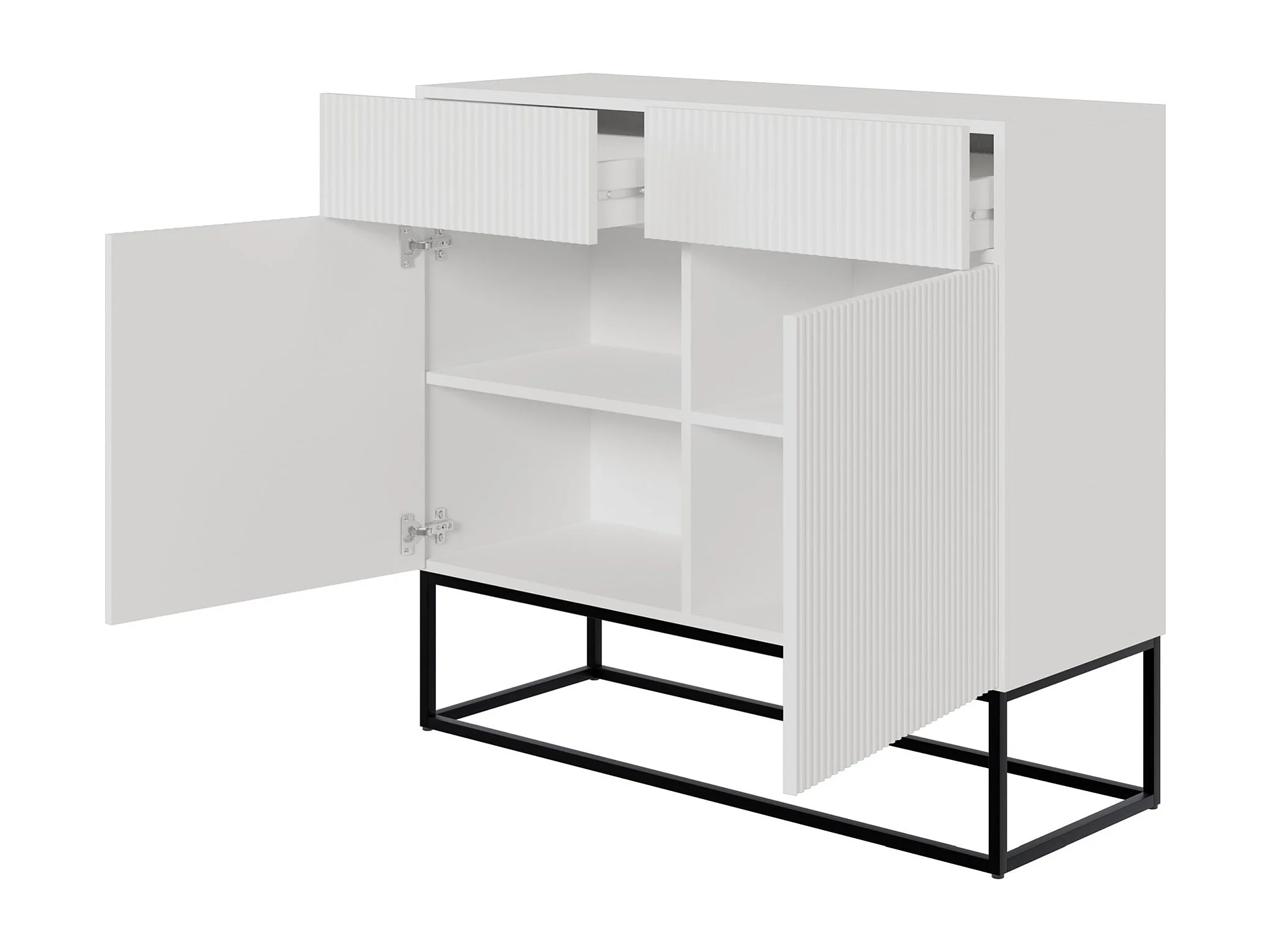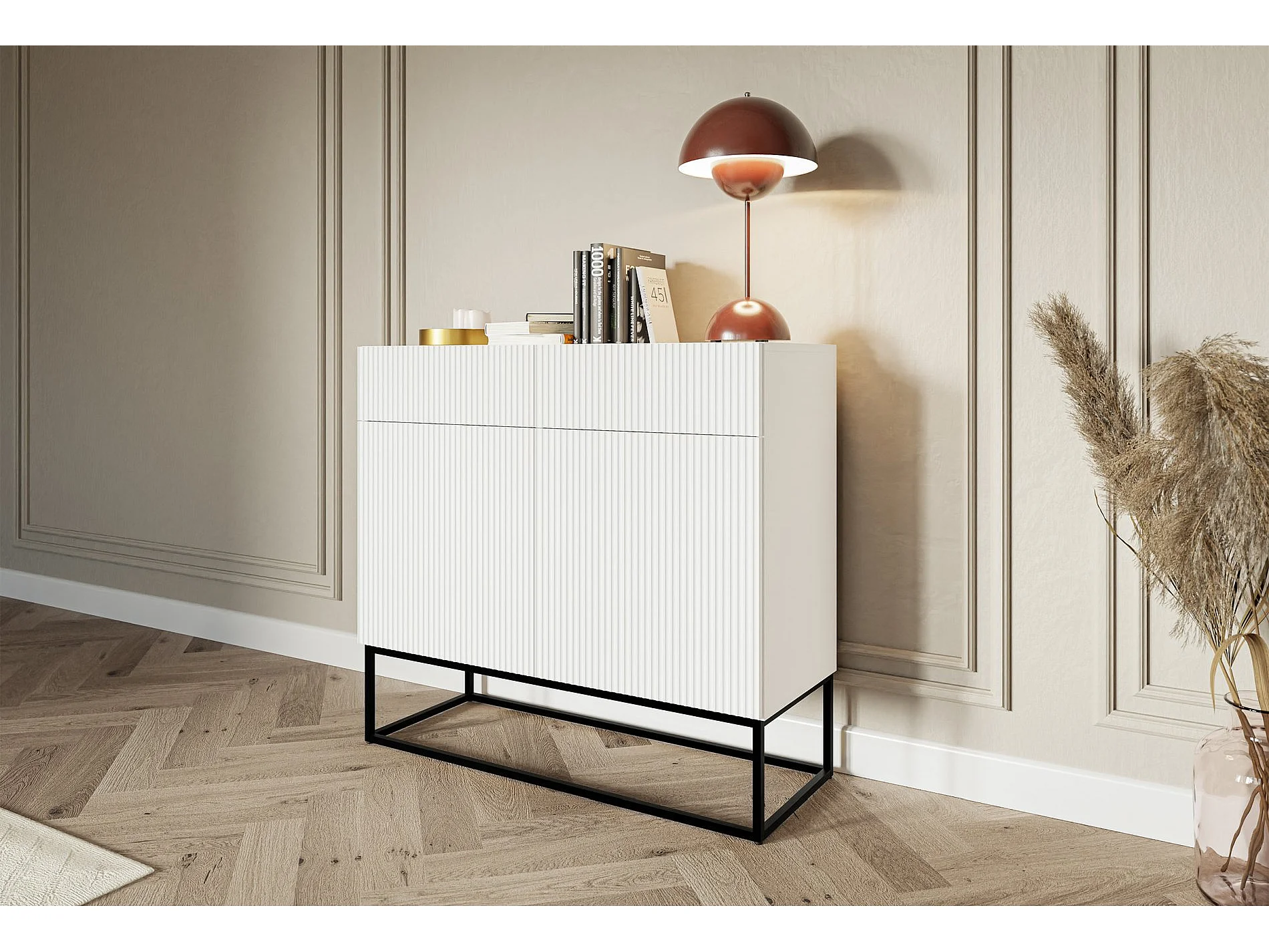 Buffet 2 portes - 100 cm blanc avec pieds noirs - VELDIO