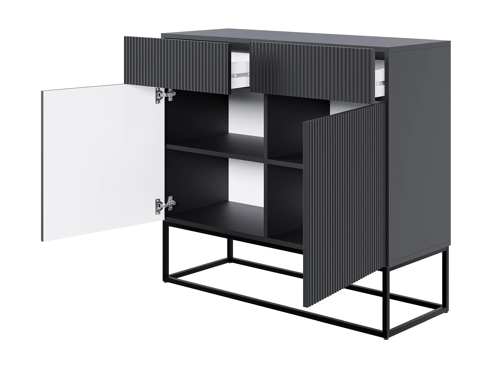 Buffet 2 portes - 100 cm noir avec pieds noirs - VELDIO