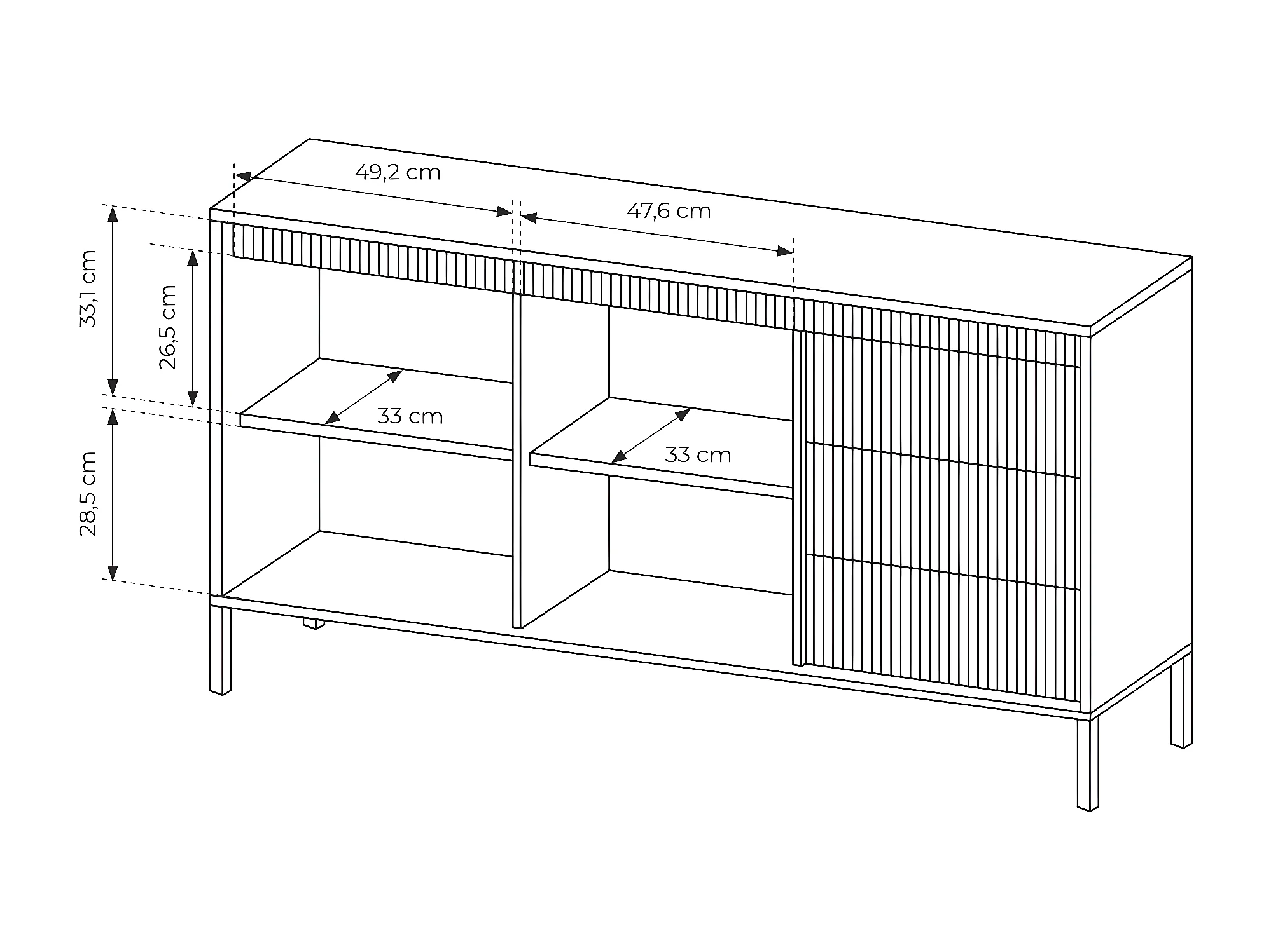 Commode à deux portes - 153 cm - avec trois tiroirs et façade fraisée - beige - FALSETTO