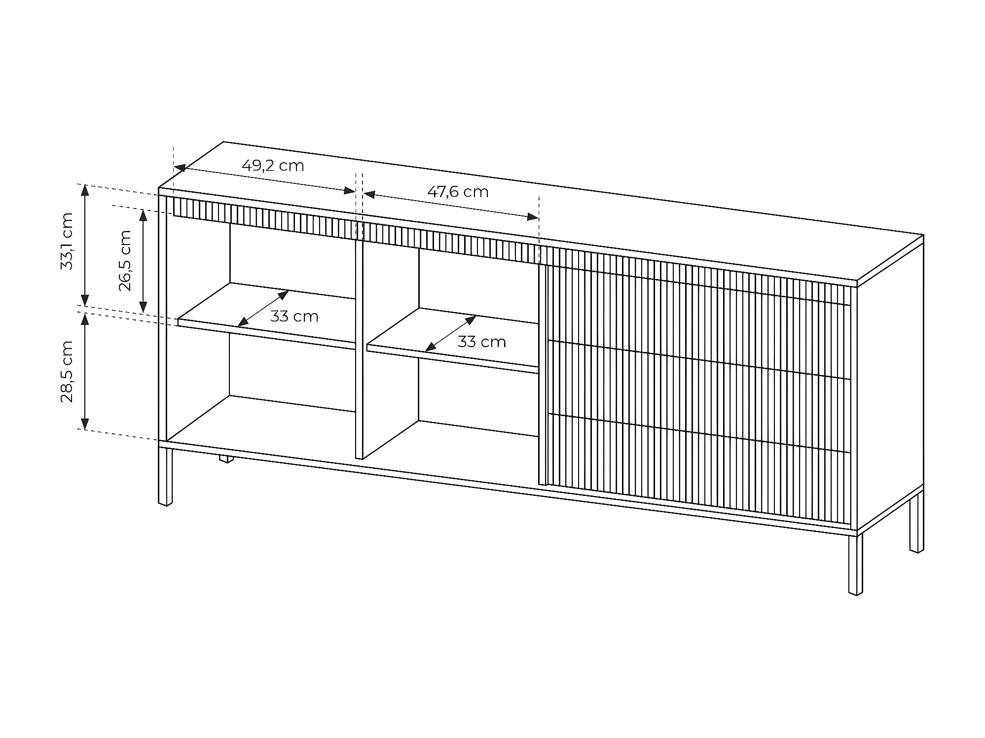 Commode à deux portes - 187 cm - avec trois tiroirs et façade fraisée - beige - FALSETTO