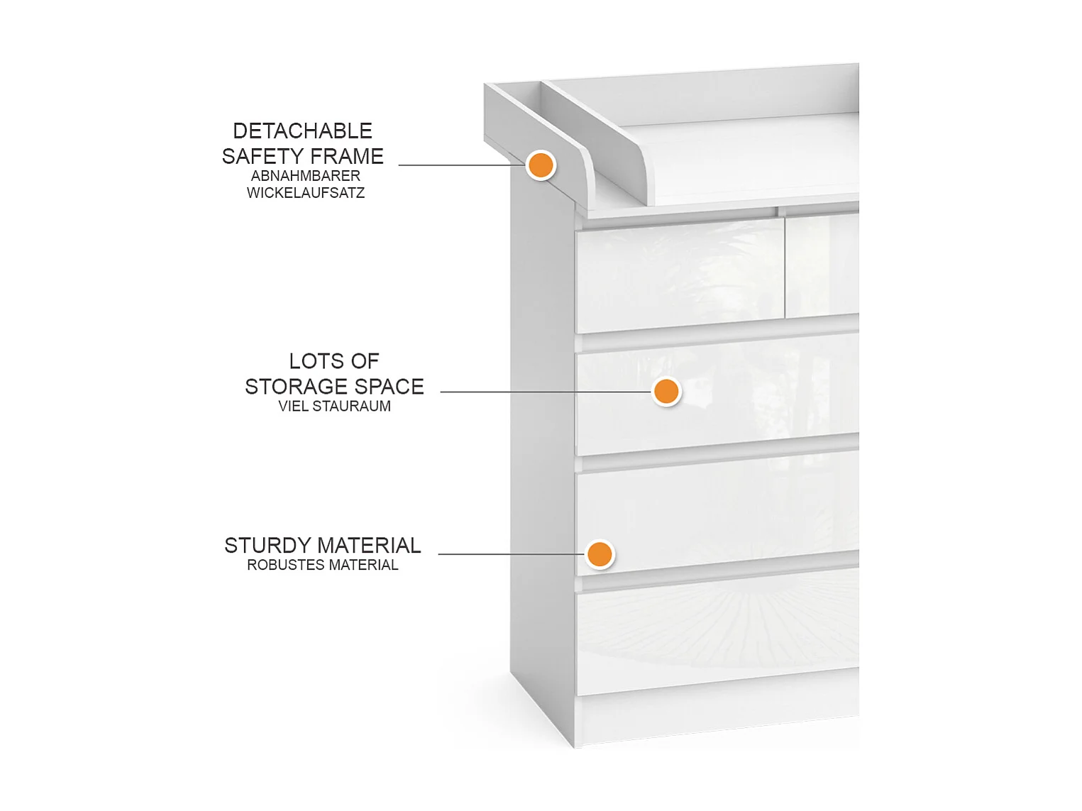 Commode à langer blanc/blanc brillant 80x76x110.2 emma