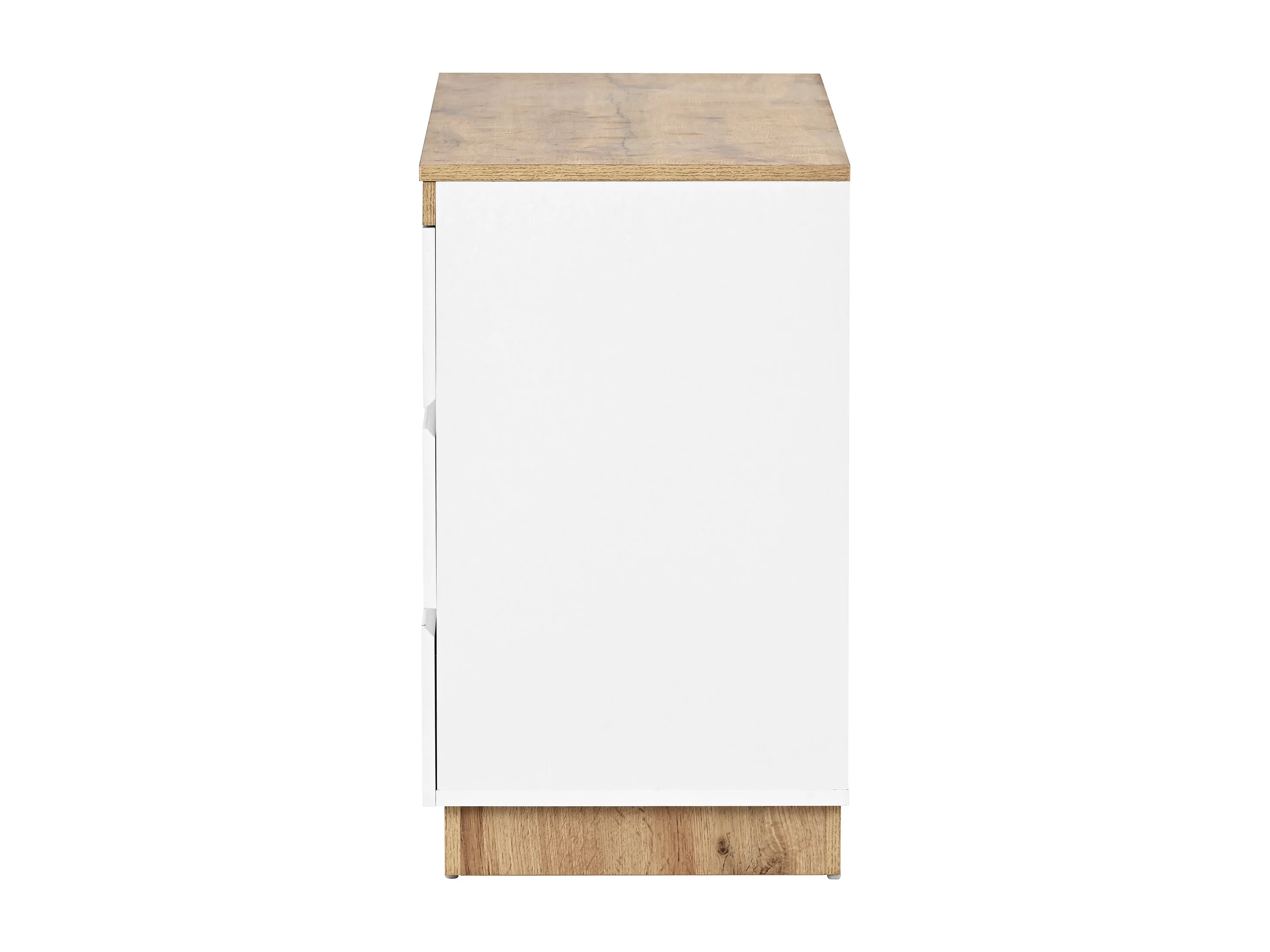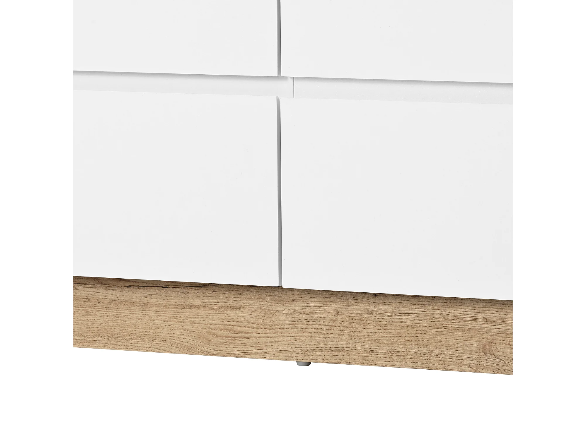 Commode 6 tiroirs, grand rangement, style classique, panneau de particules, blanc et chêne