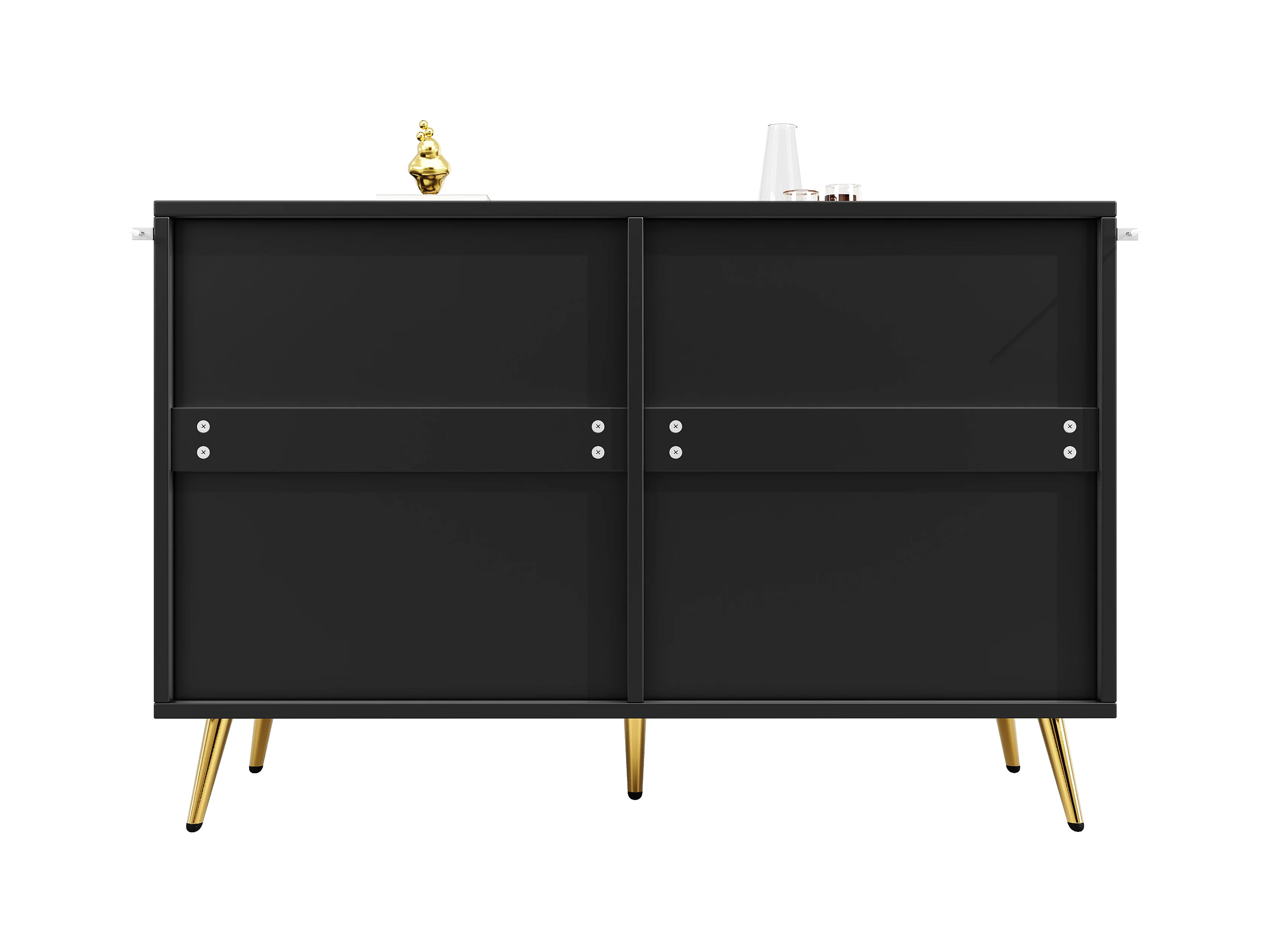 Buffet 3 portes et tiroirs, noir et or, MDF, (120x38x77 cm)