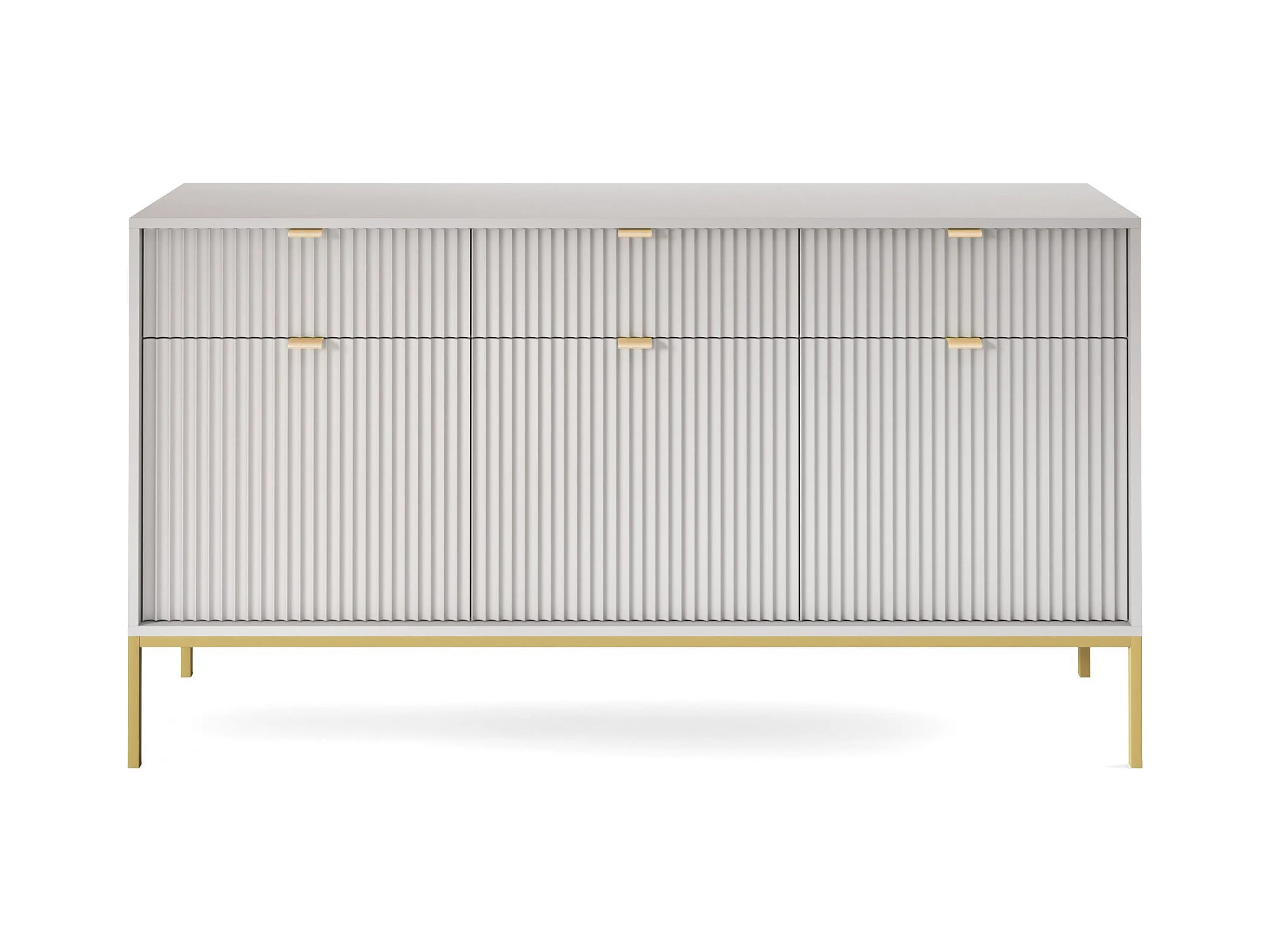 Commode à trois portes - 154 cm - gris avec pieds dorés - VELLORE