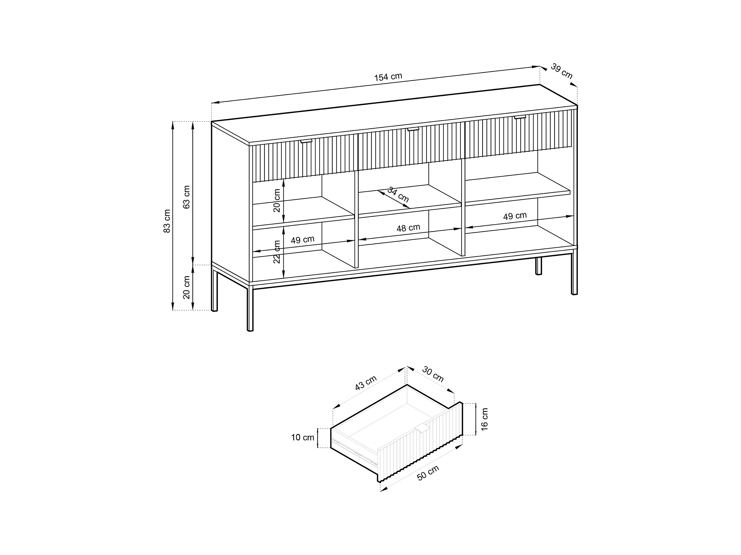 Commode, Buffet, Armoire, 135x57x75 cm, Chambre à coucher, pièce, Armoire à Tiroirs, Ciment