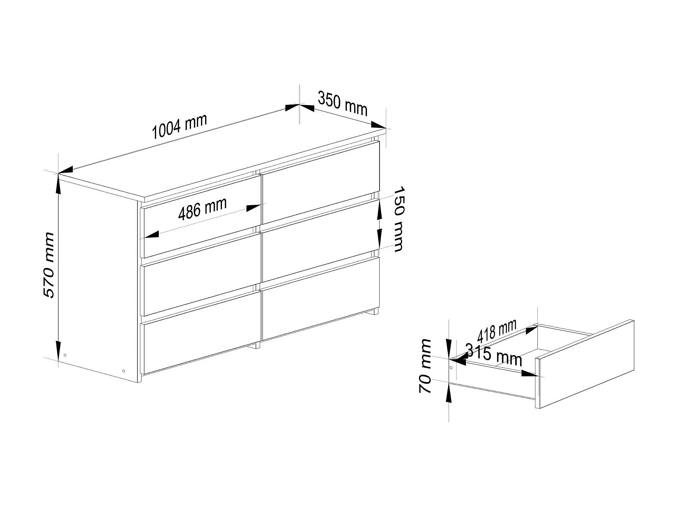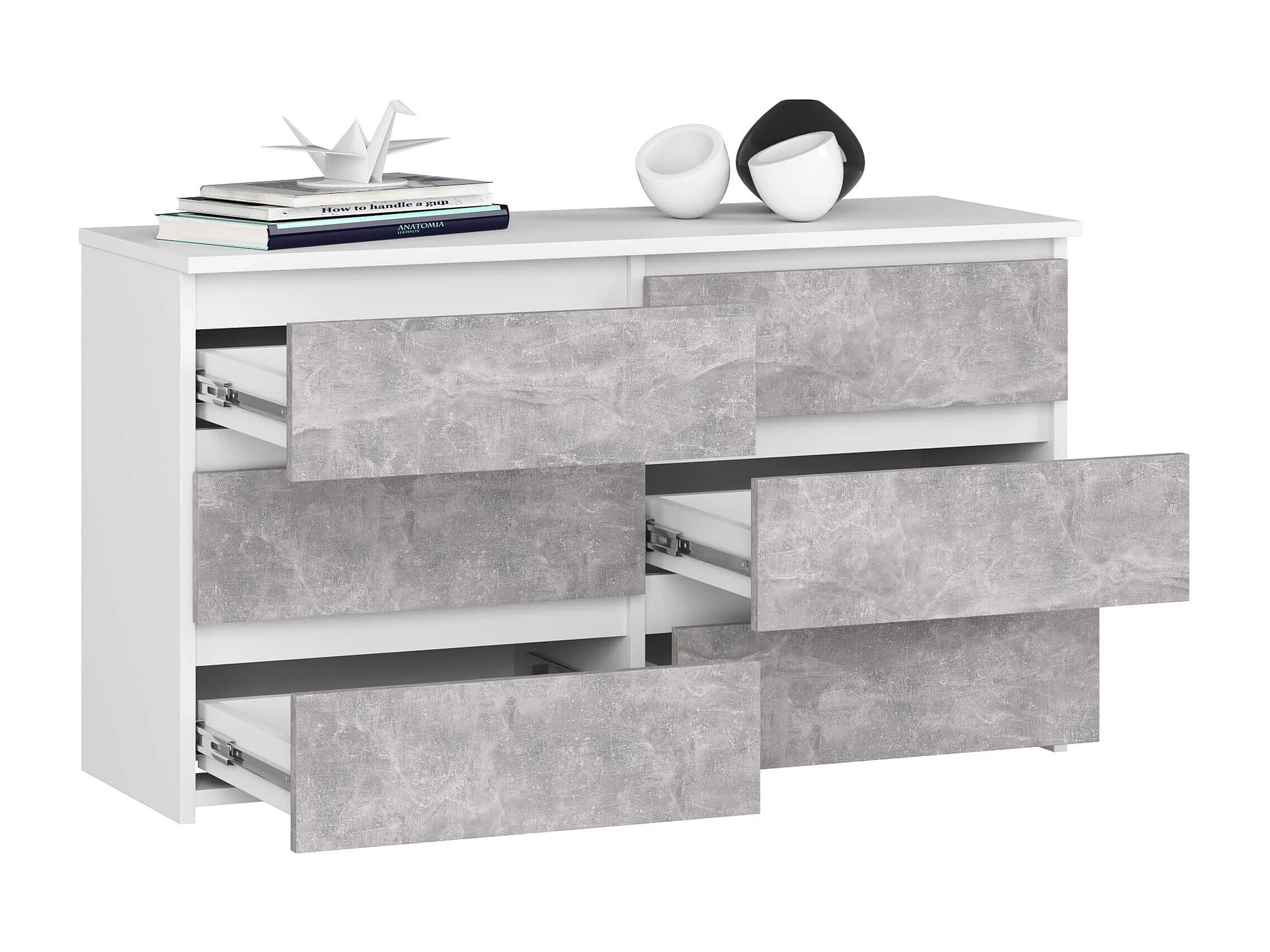 Petite Commode AKORD CL100 Blanche 100 cm 6 tiroirs façade Béton 100x35x57 cm