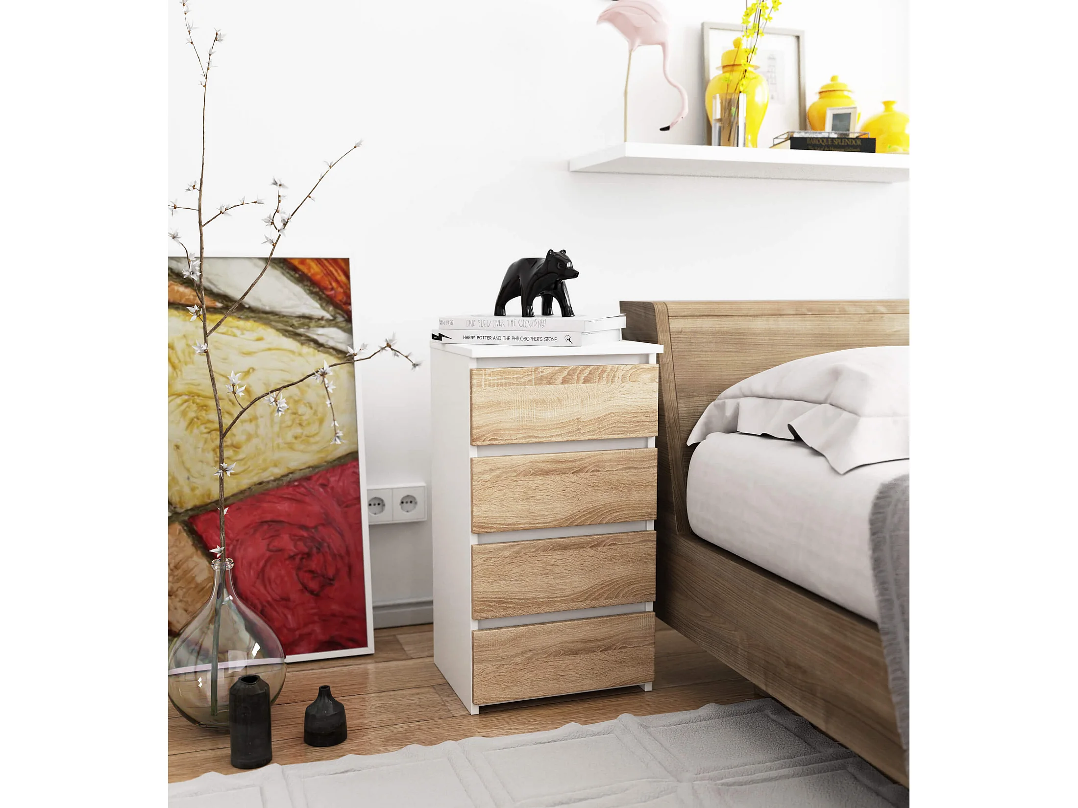 Commode AKORD CL4 Blanche 40 cm 4 tiroirs façade Chêne Sonoma 40x35x74 cm