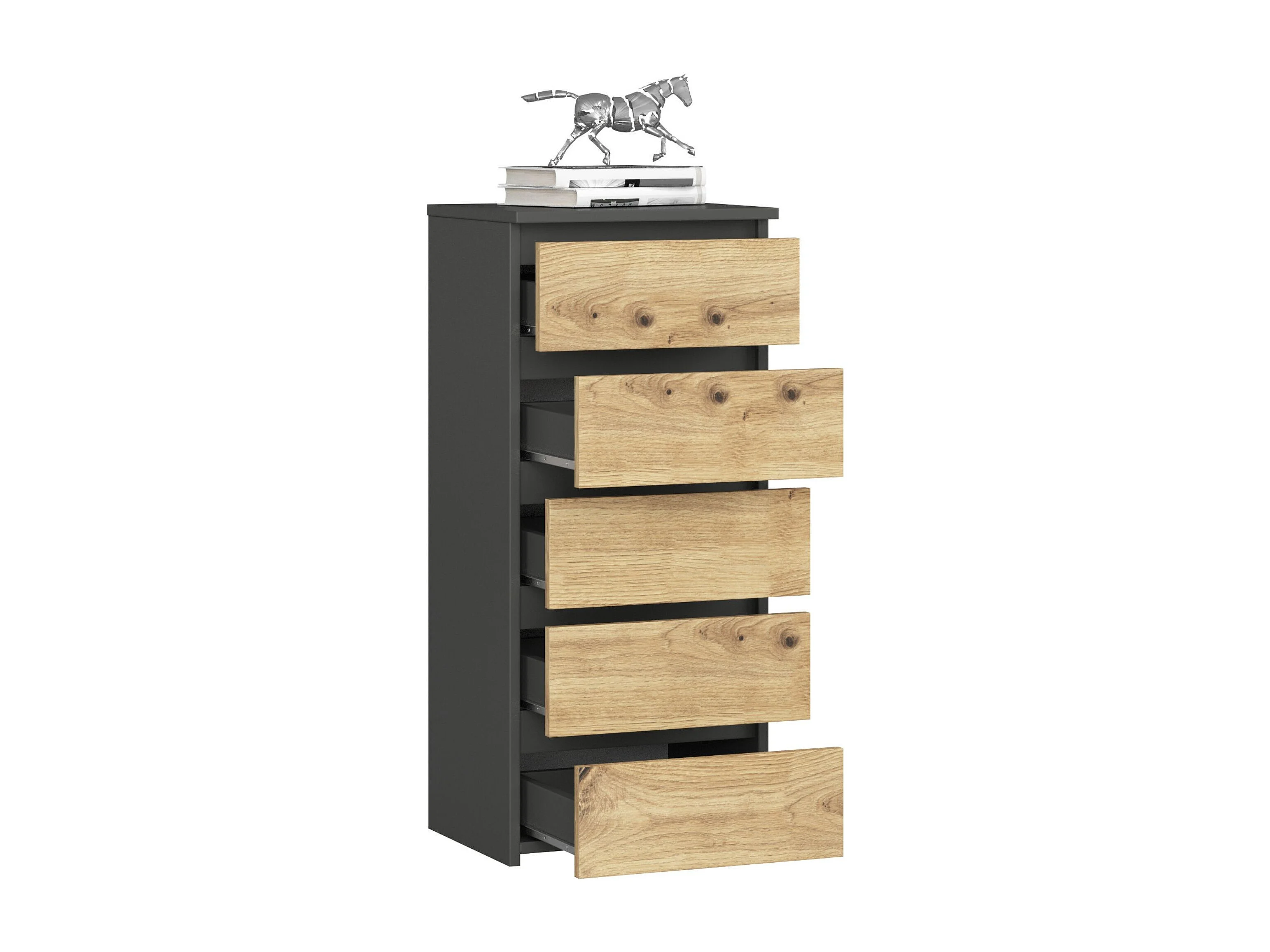 Commode AKORD CL5 Gris Graphite 40 cm 5 tiroirs façade Chêne Artisan 40x35x92 cm
