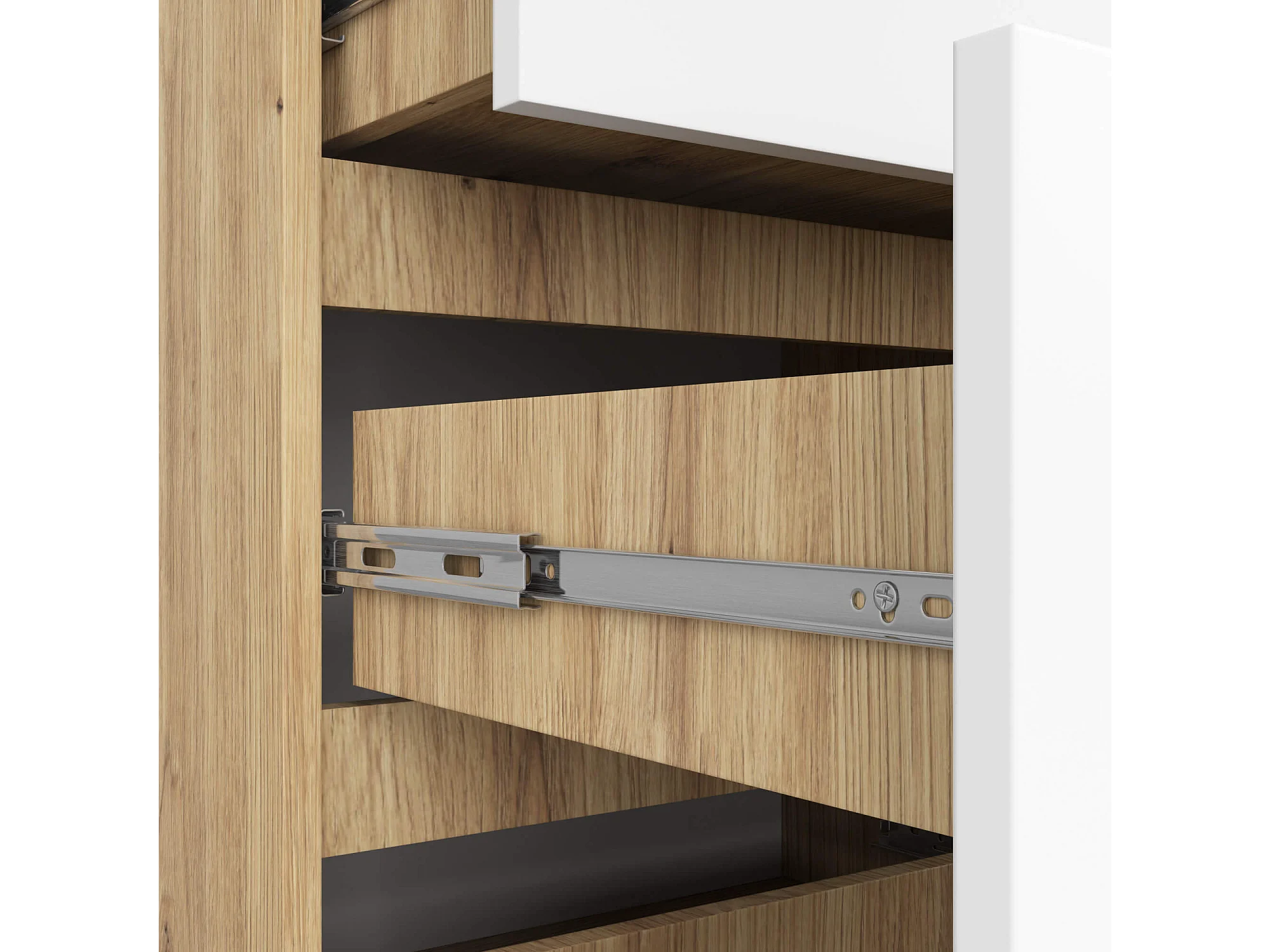 Commode AKORD K120 Chêne Artisan 120 cm 10 tiroirs façade Blanche 120x40x121 cm