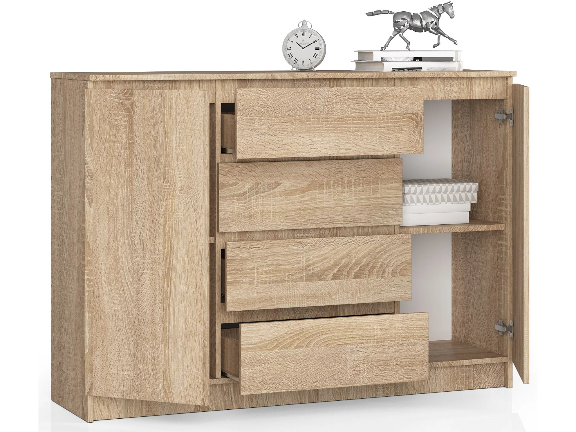 Commode AKORD K140 Chêne Sonoma 138 cm 2 portes 4 tiroirs façade Chêne Sonoma 4 étagères 138x40x99 cm