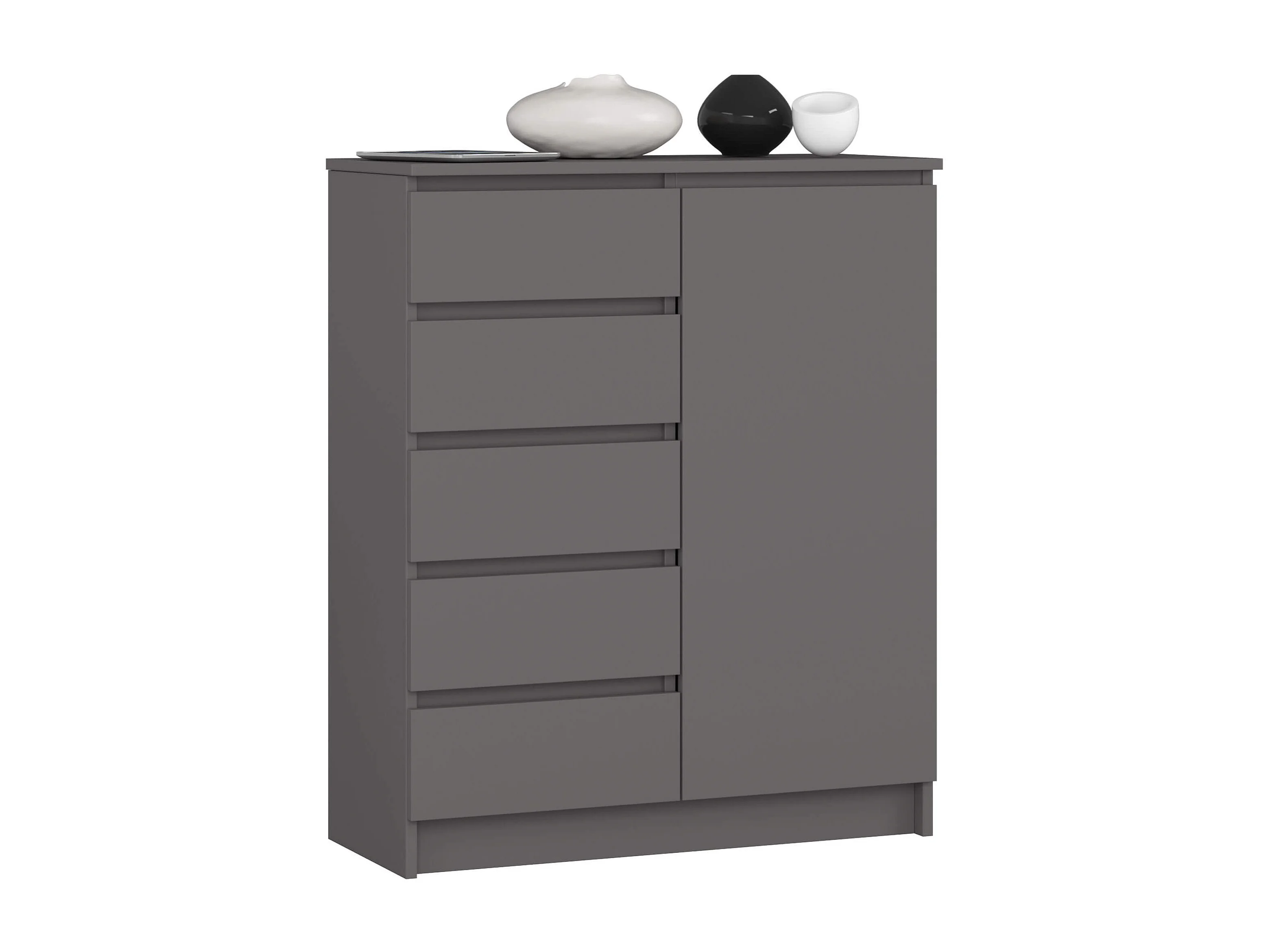 Commode AKORD K80 Gris Graphite 80 cm 1 porte 5 tiroirs 3 étagères 80x35x97 cm