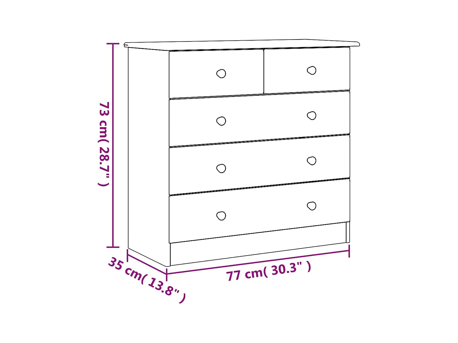 Commode ALTA blanc 77x35x73 bois massif de pin