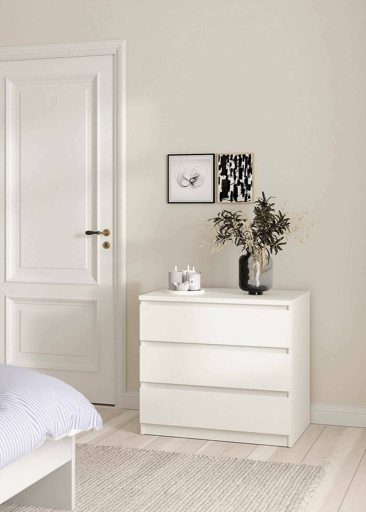 Commode Artic, Commode polyvalente, Commode de chambre, Meuble avec tiroirs, 77x50 h70 cm, Blanc