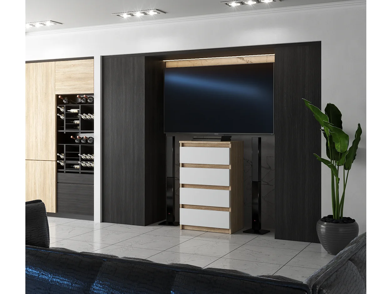 Commode avec 4 tiroirs 60cm Chêne Sonoma Blanc Meubles de salon -TV-Chambre