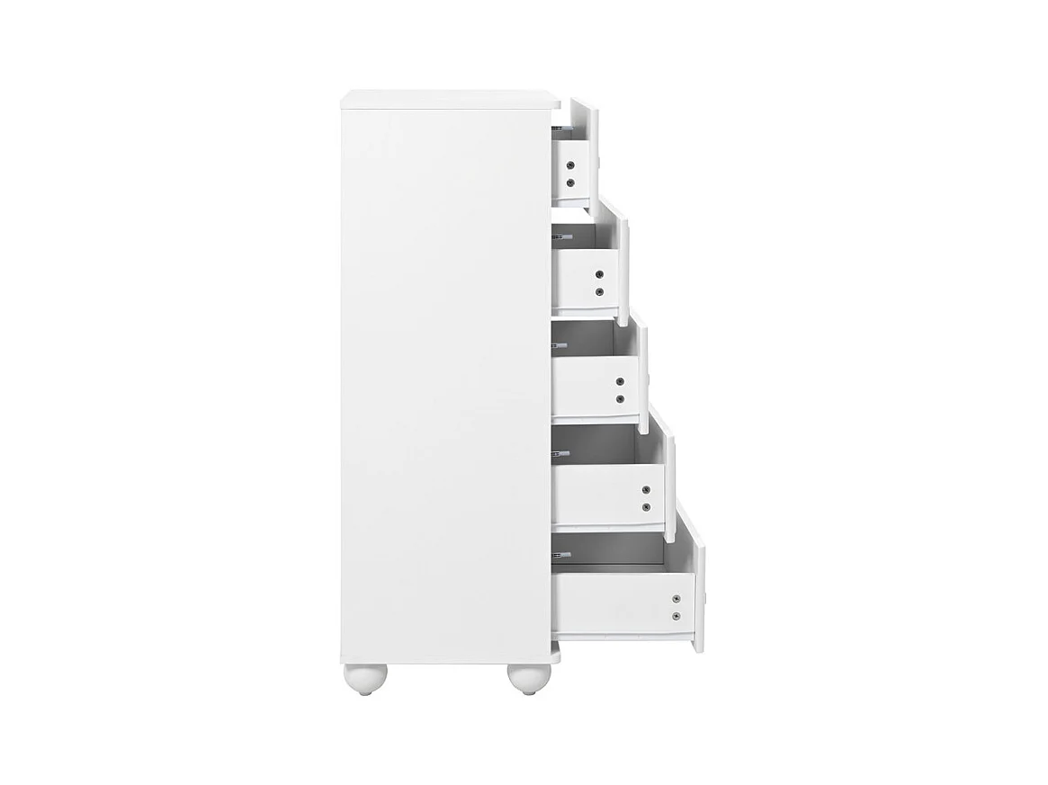 Commode Irving, commode 5 tiroirs, commode pour la chambre, commode moderne, 61x40h118 cm, blanc