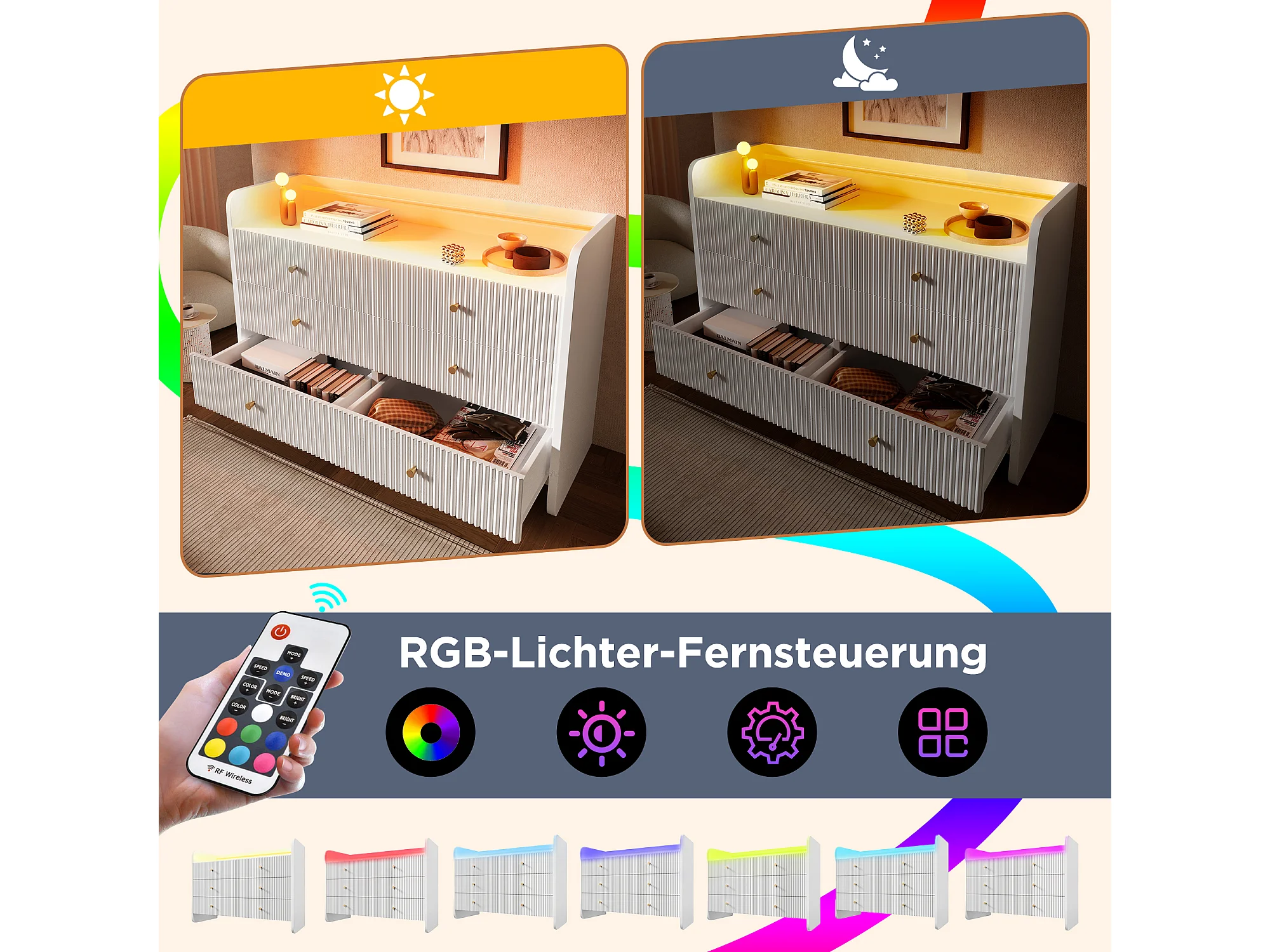Commode avec 6 tiroirs - 120 x 40 x 75 cm - LEDs - Design ondulé - Panneau de particules - pour salon et chambre - Blanc