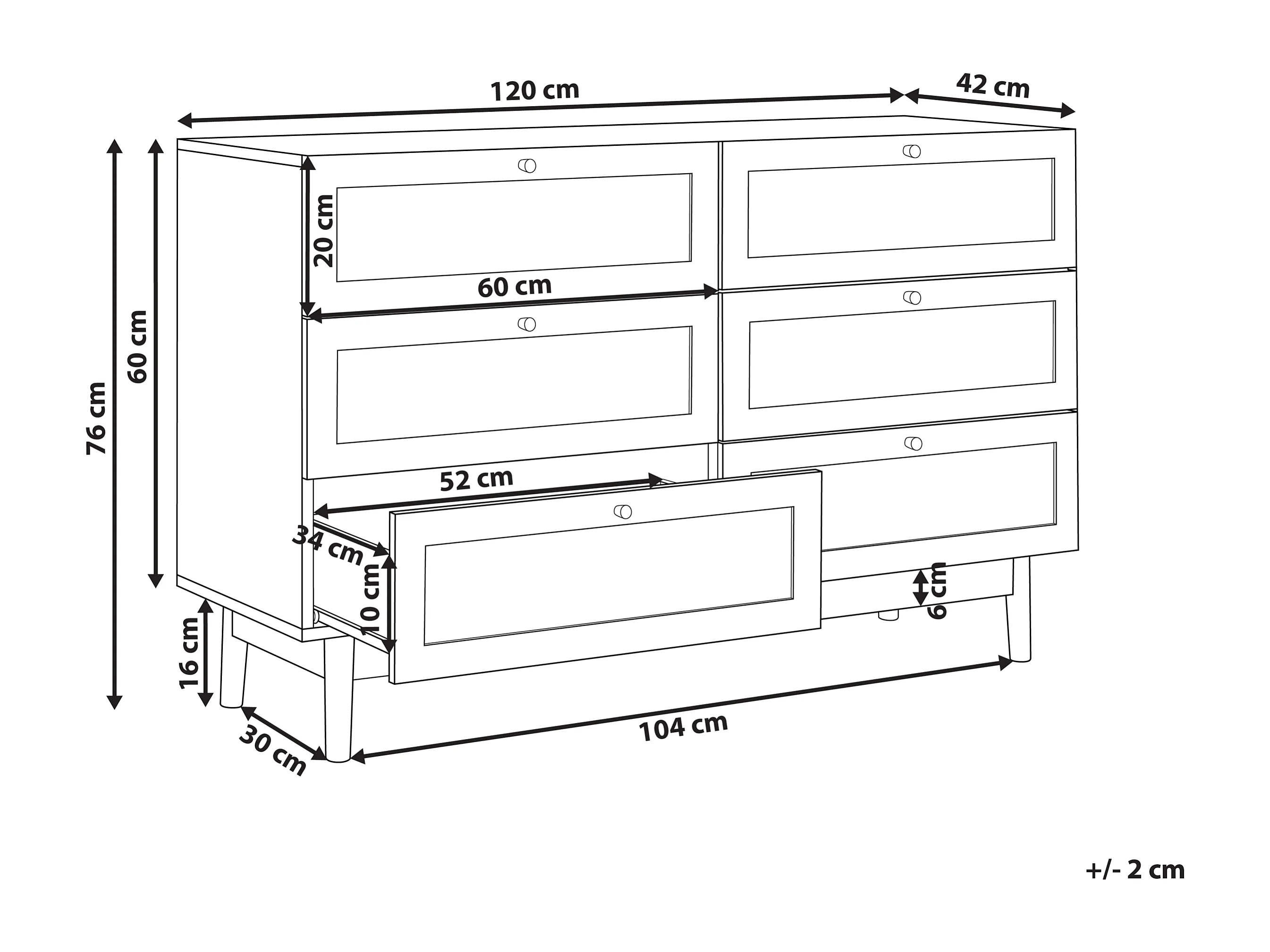 Commode à 6 tiroirs NIVO Marron clair