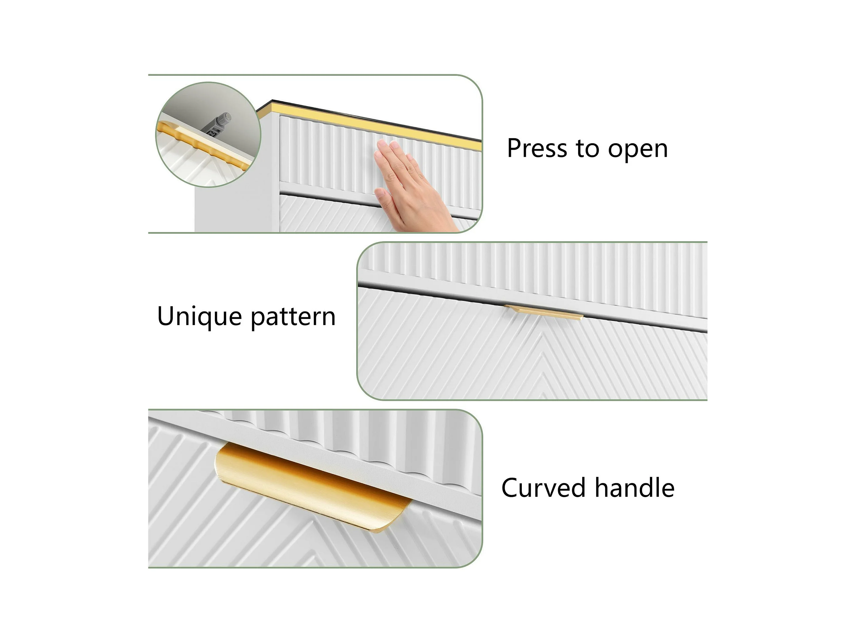 Commode avec 6 tiroirs - 120 x 44x 77 cm - Panneaux de particules et pièds en métal doré - Blanc