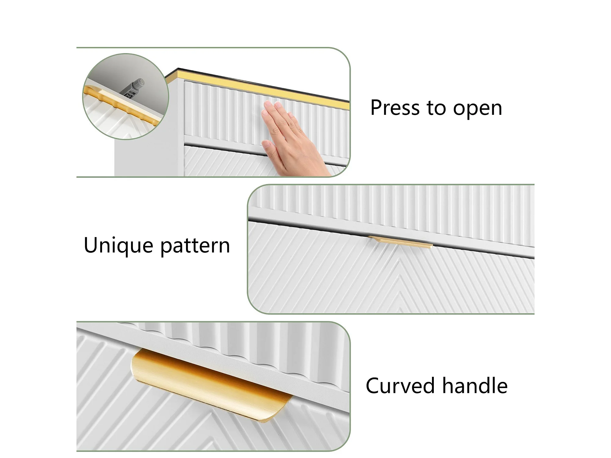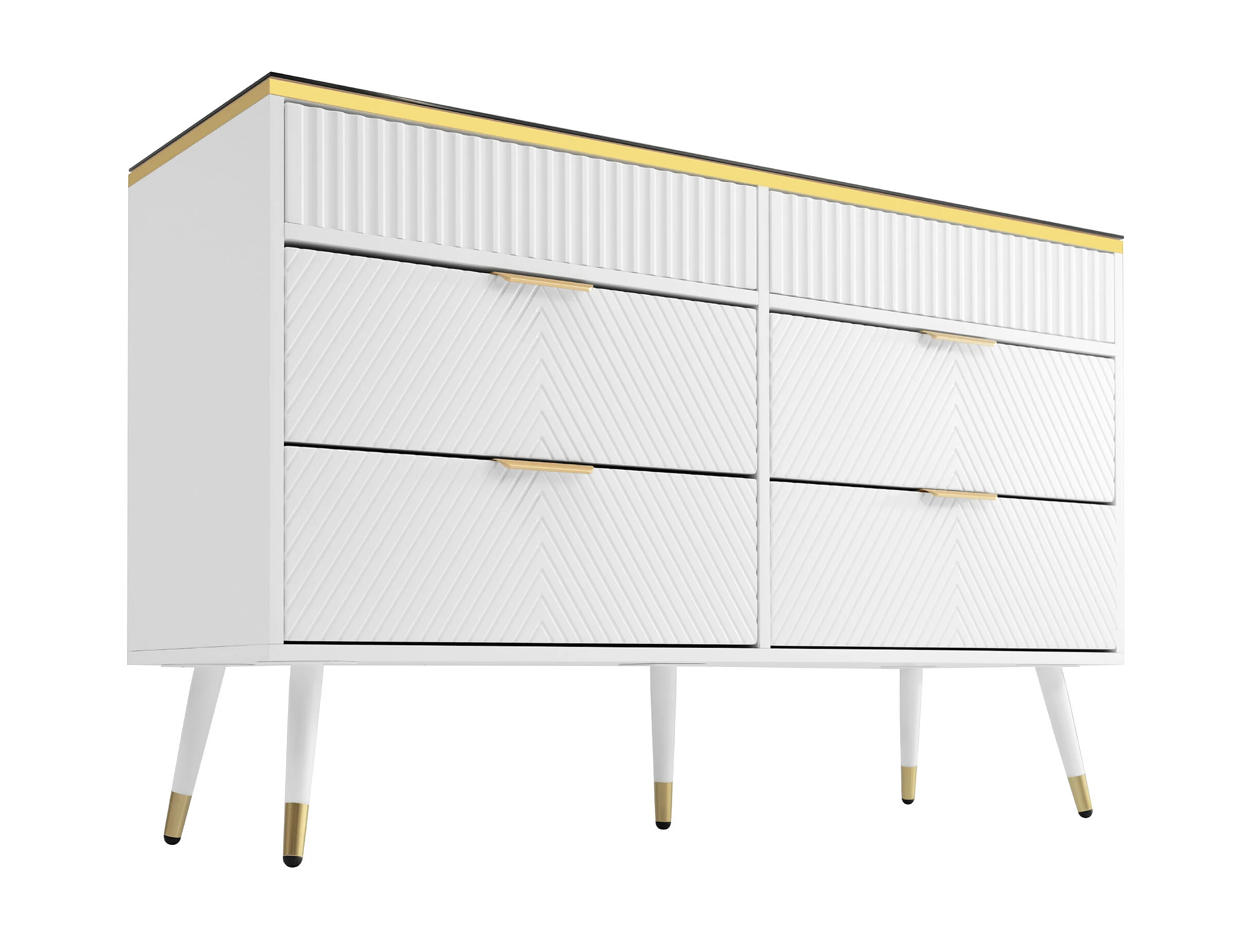 Commode avec 6 tiroirs et compartiments divisés - plateau en verre - Blanc