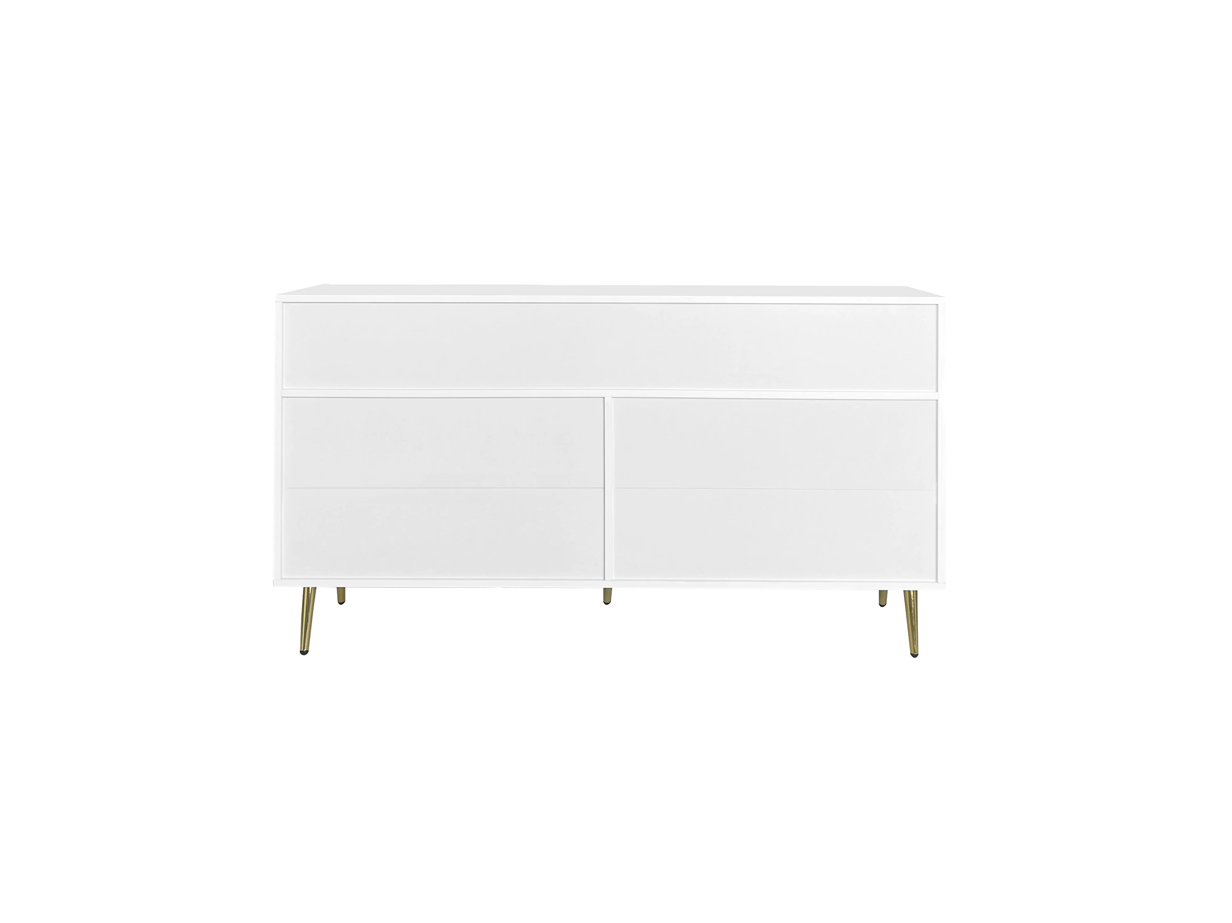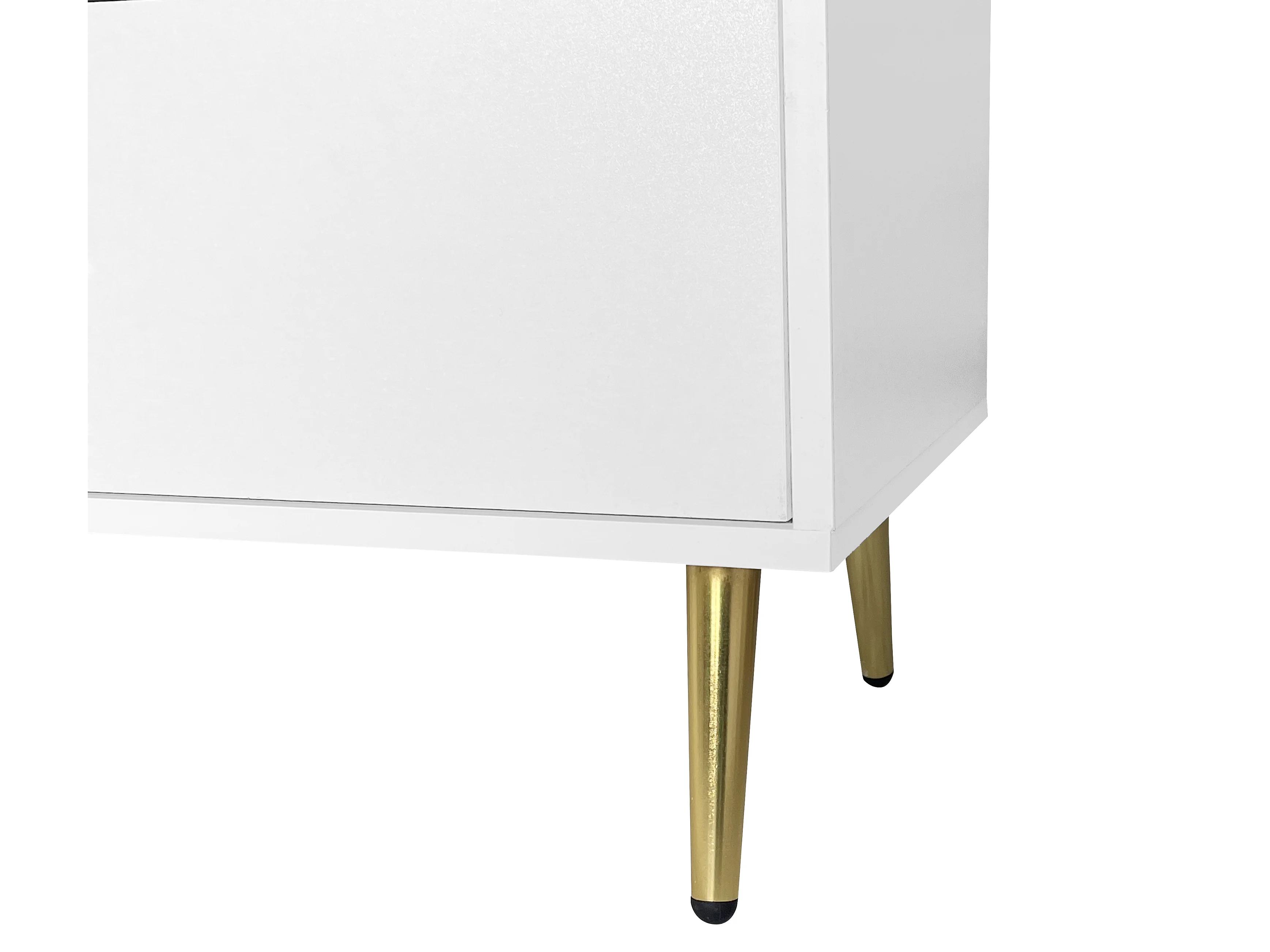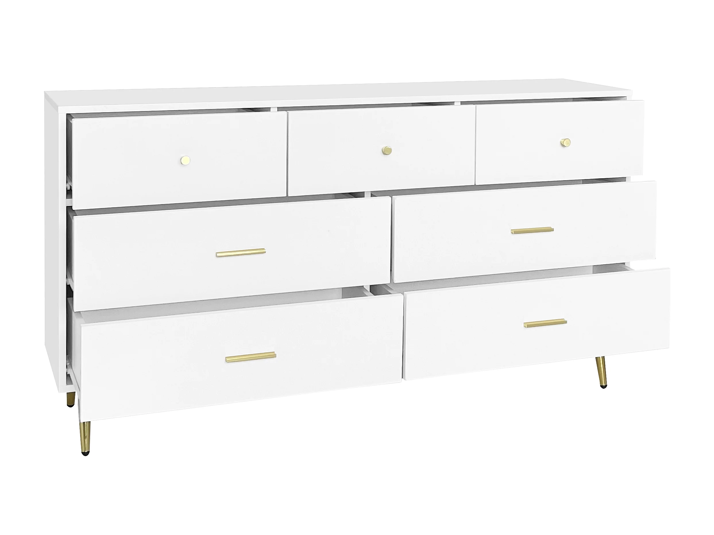 Commode avec 7 tiroirs - Poignées et pieds dorés - Bois blanc