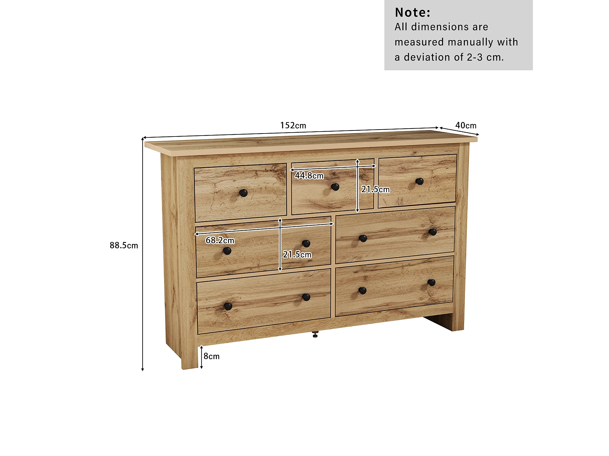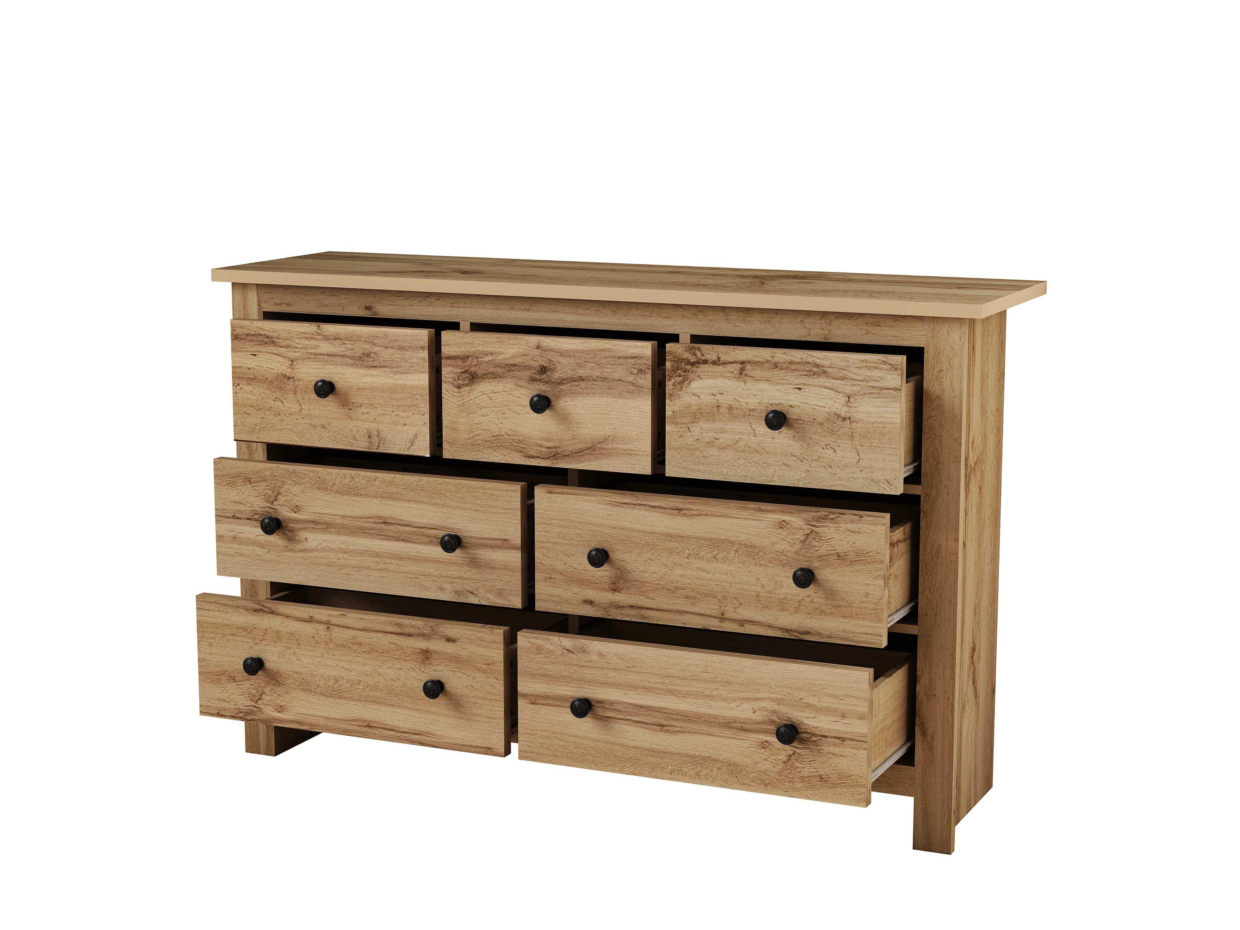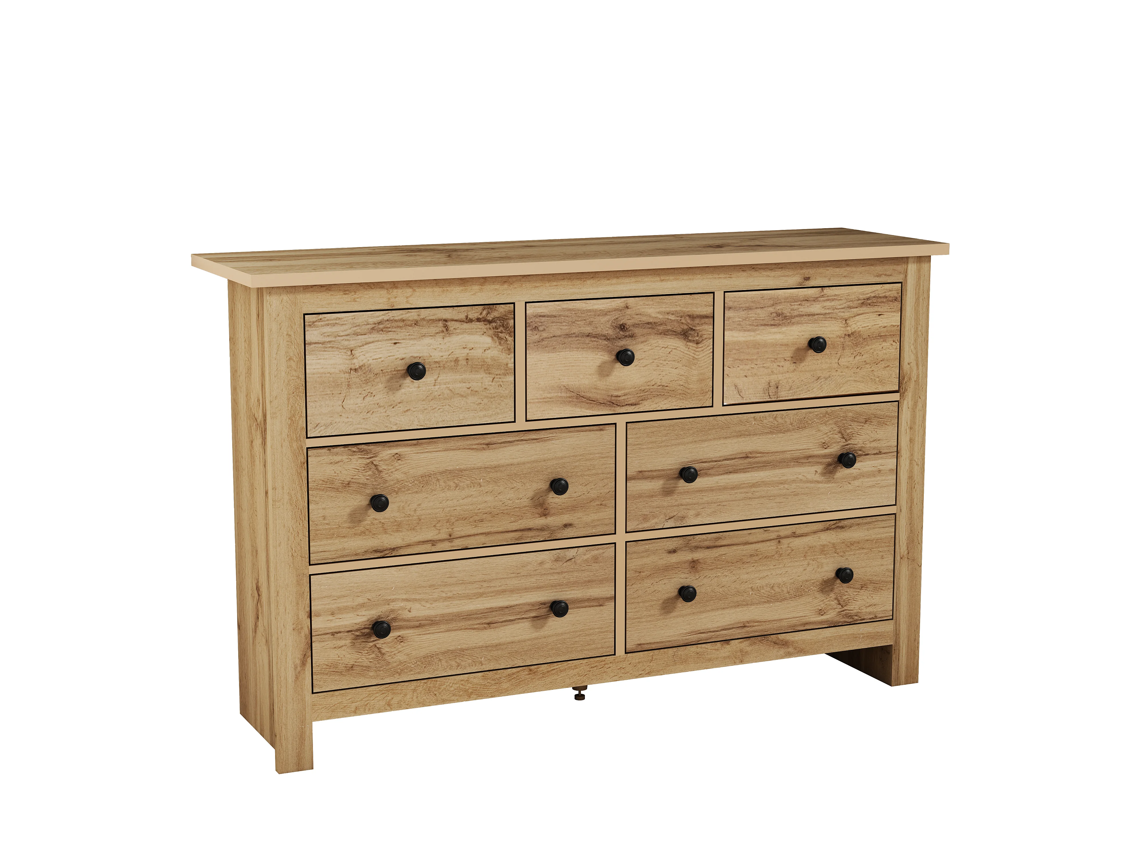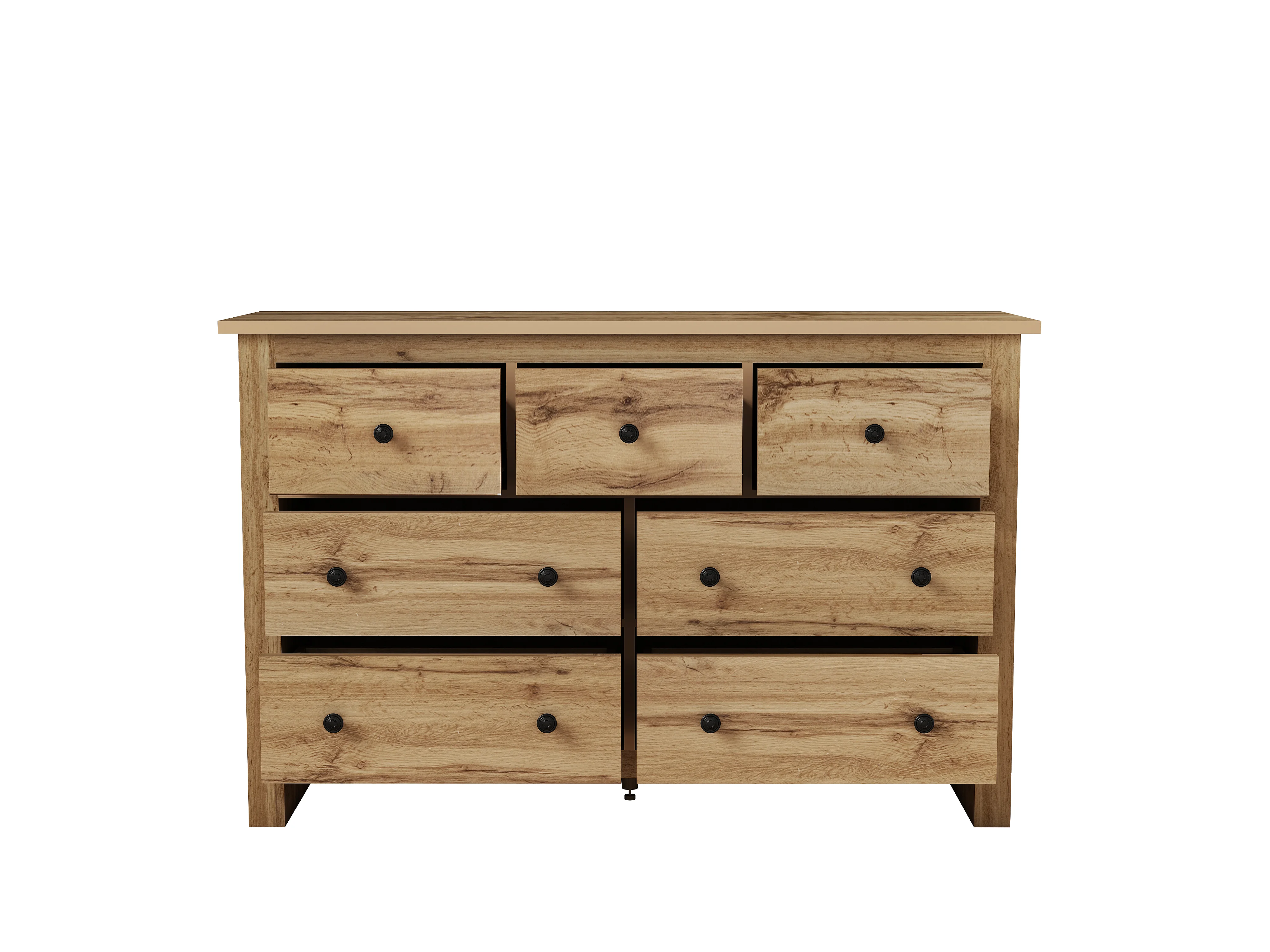 Commode avec 7 tiroirs - poignées noires - Couleur bois