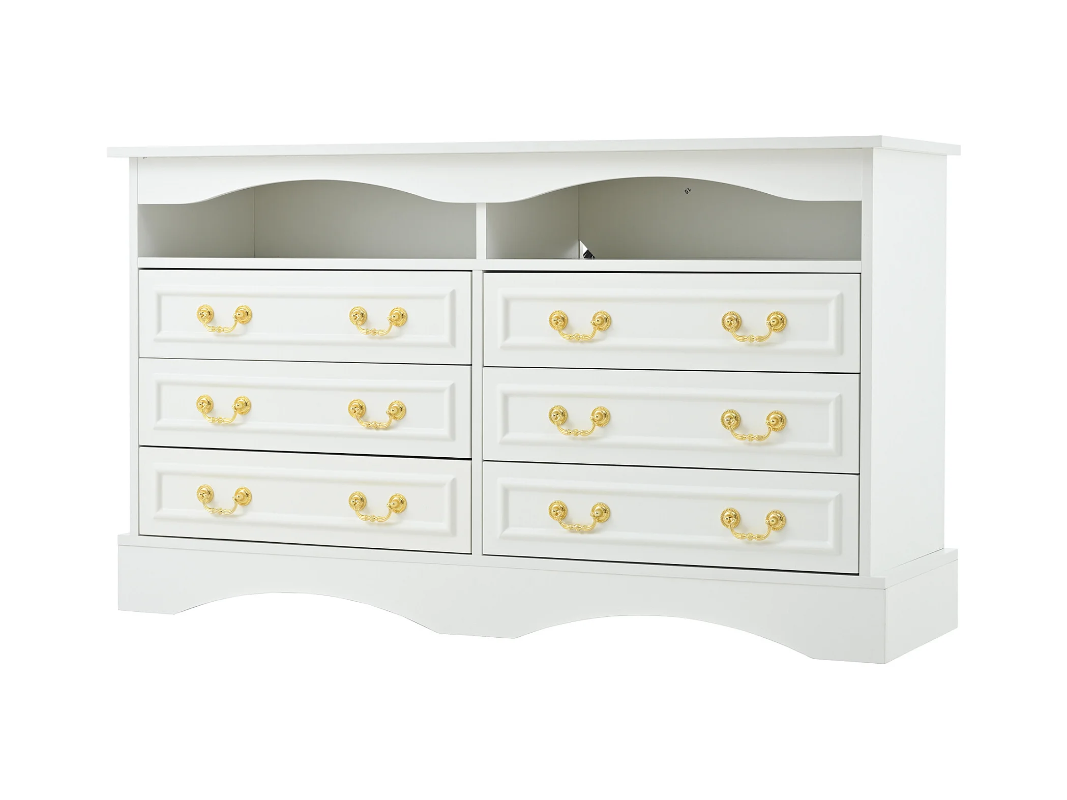 Commode avec éclairage LED - Commode à 6 tiroirs avec poignées dorées - rangements ouverts