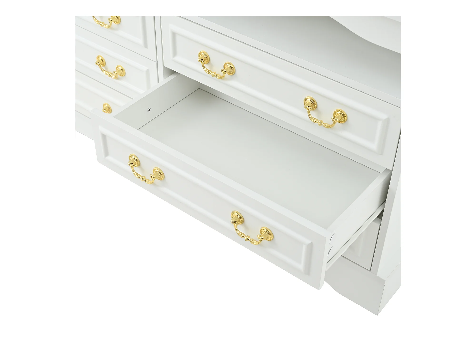 Commode avec 6 tiroirs - pieds dorés - en Panneaux de particules - Blanc