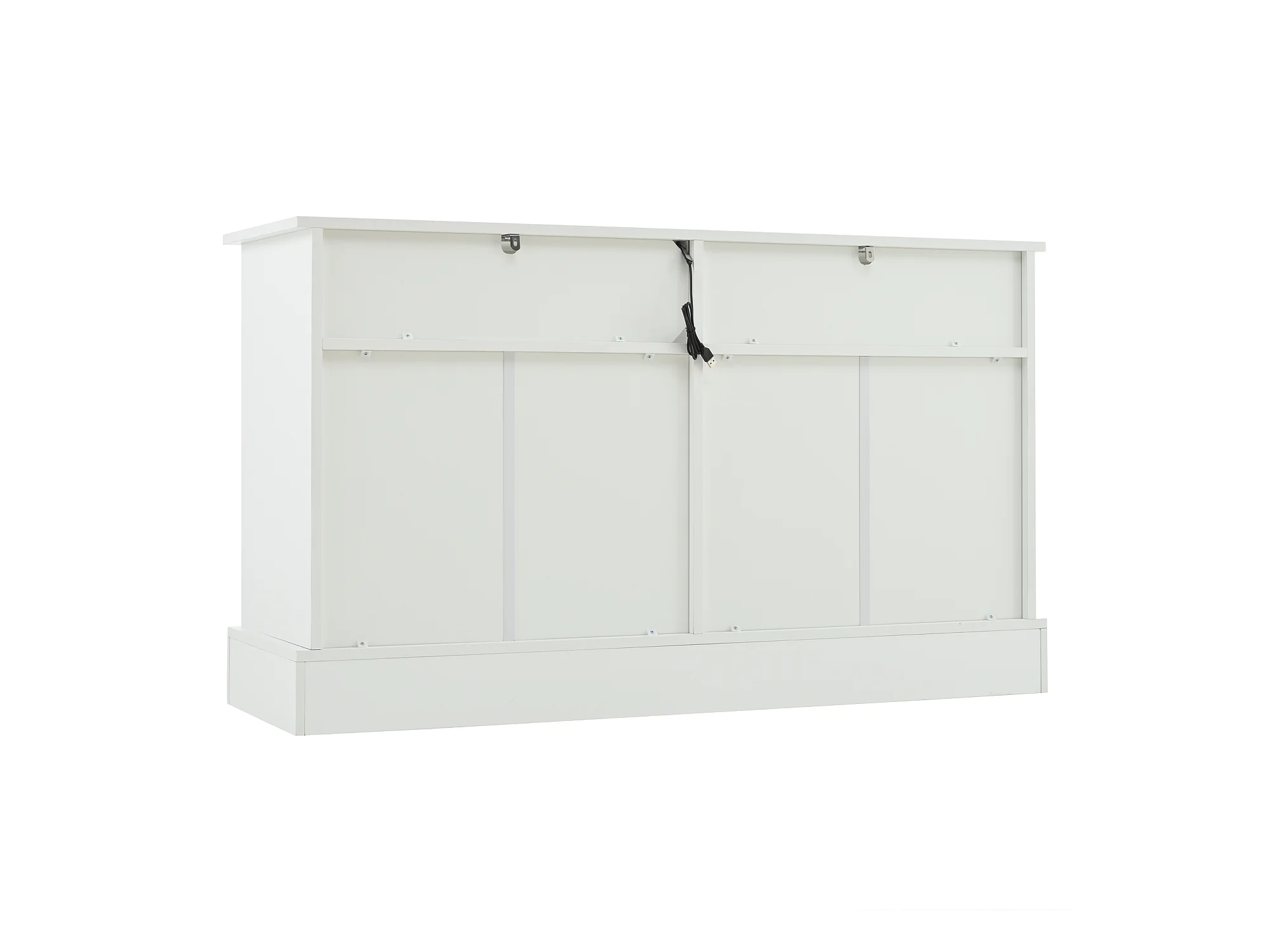 Commode décorée de rayures verticales - 3 tiroirs et 2 portes avec étagères réglables - Blanc