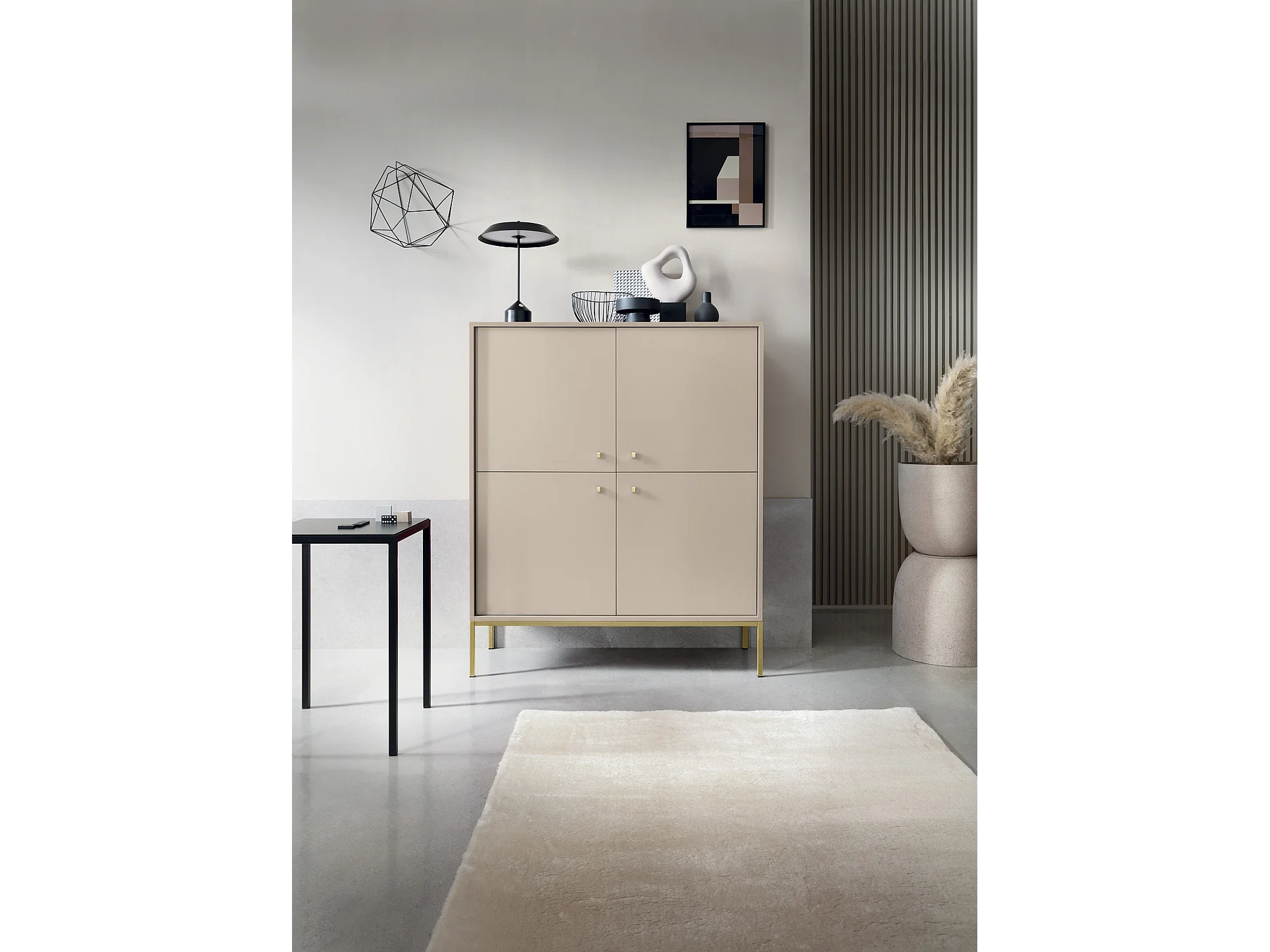 Commode : beige sable, 103,5 x 125,5 x 39 cm, pieds dorées