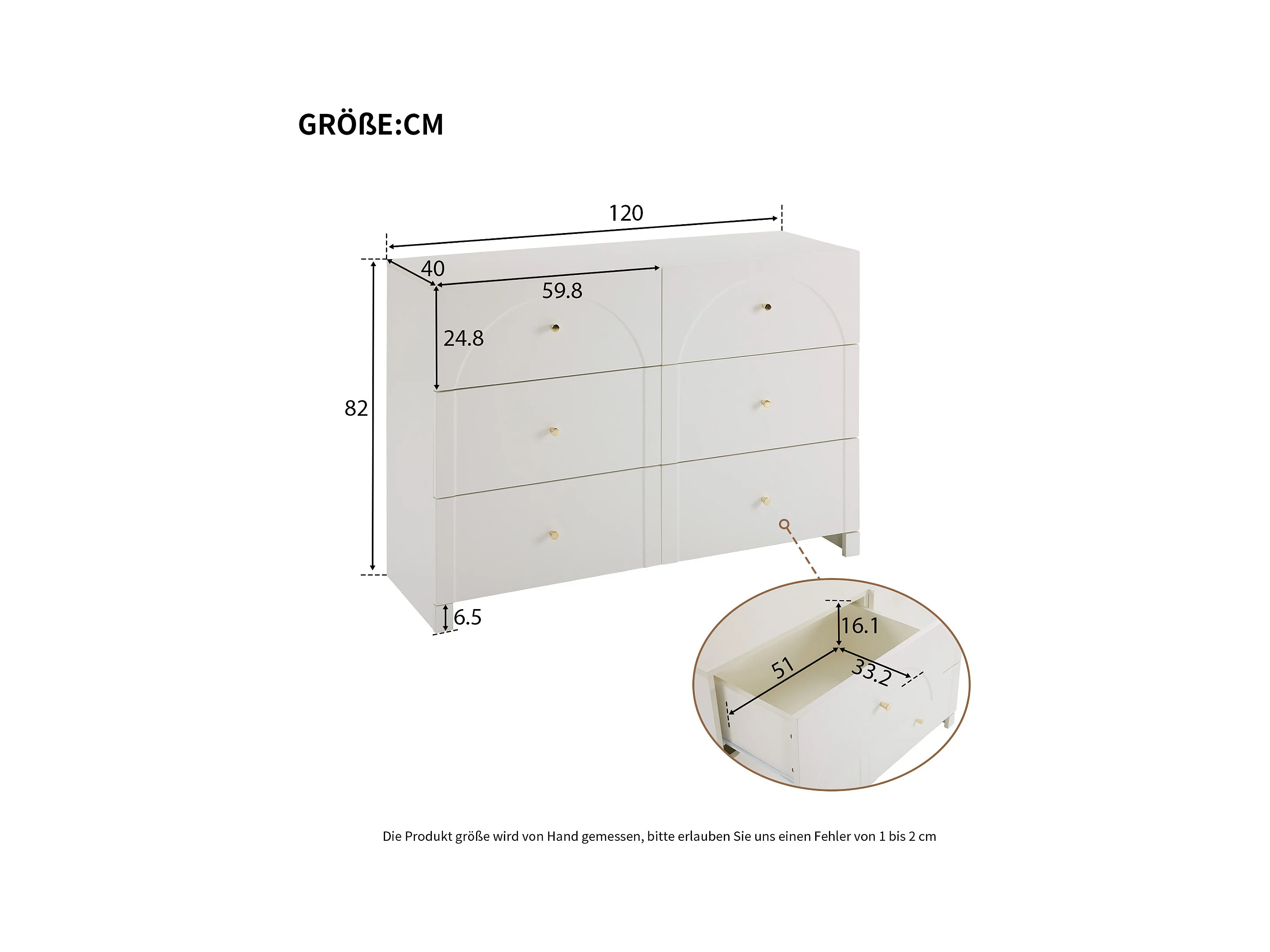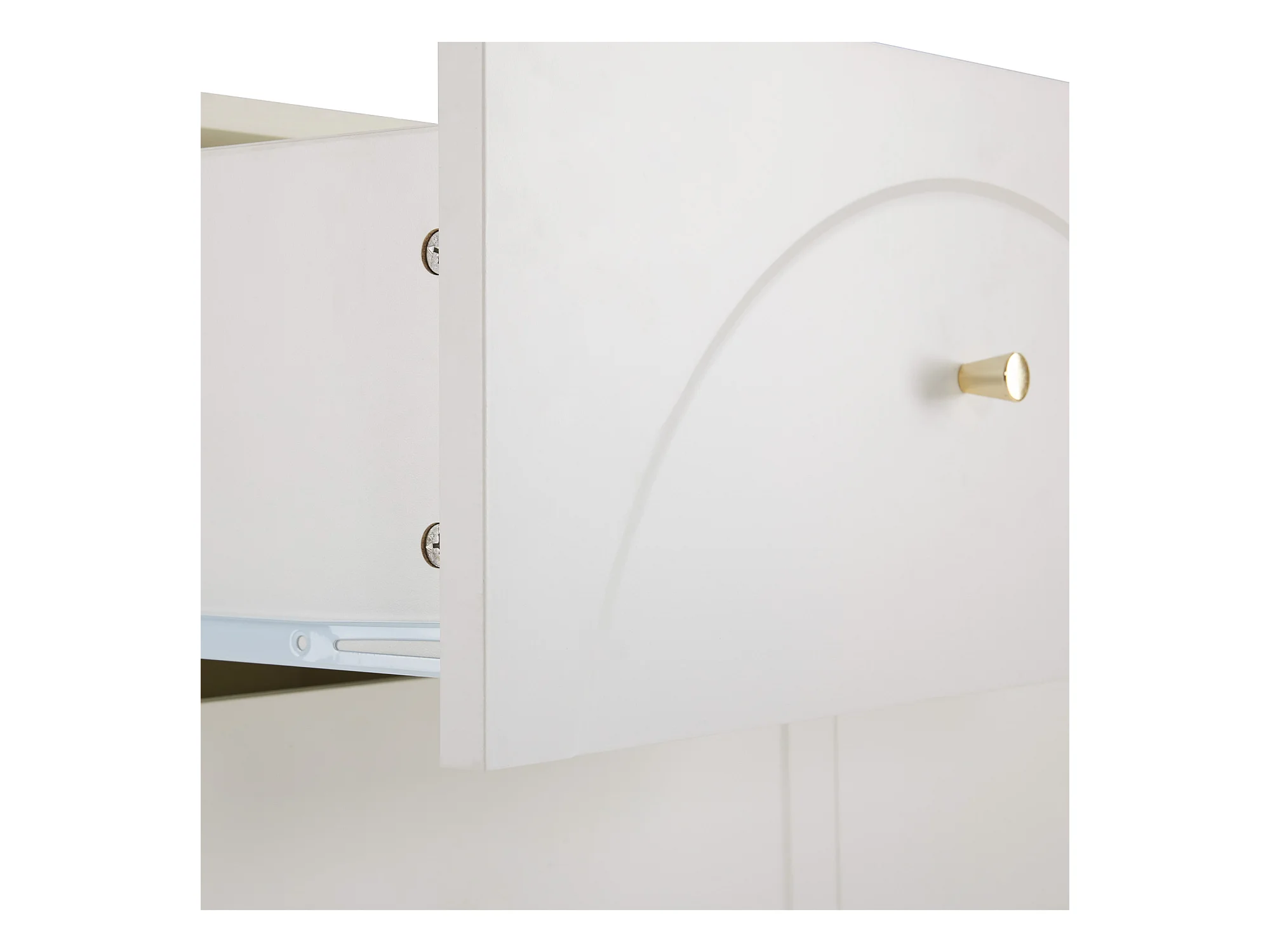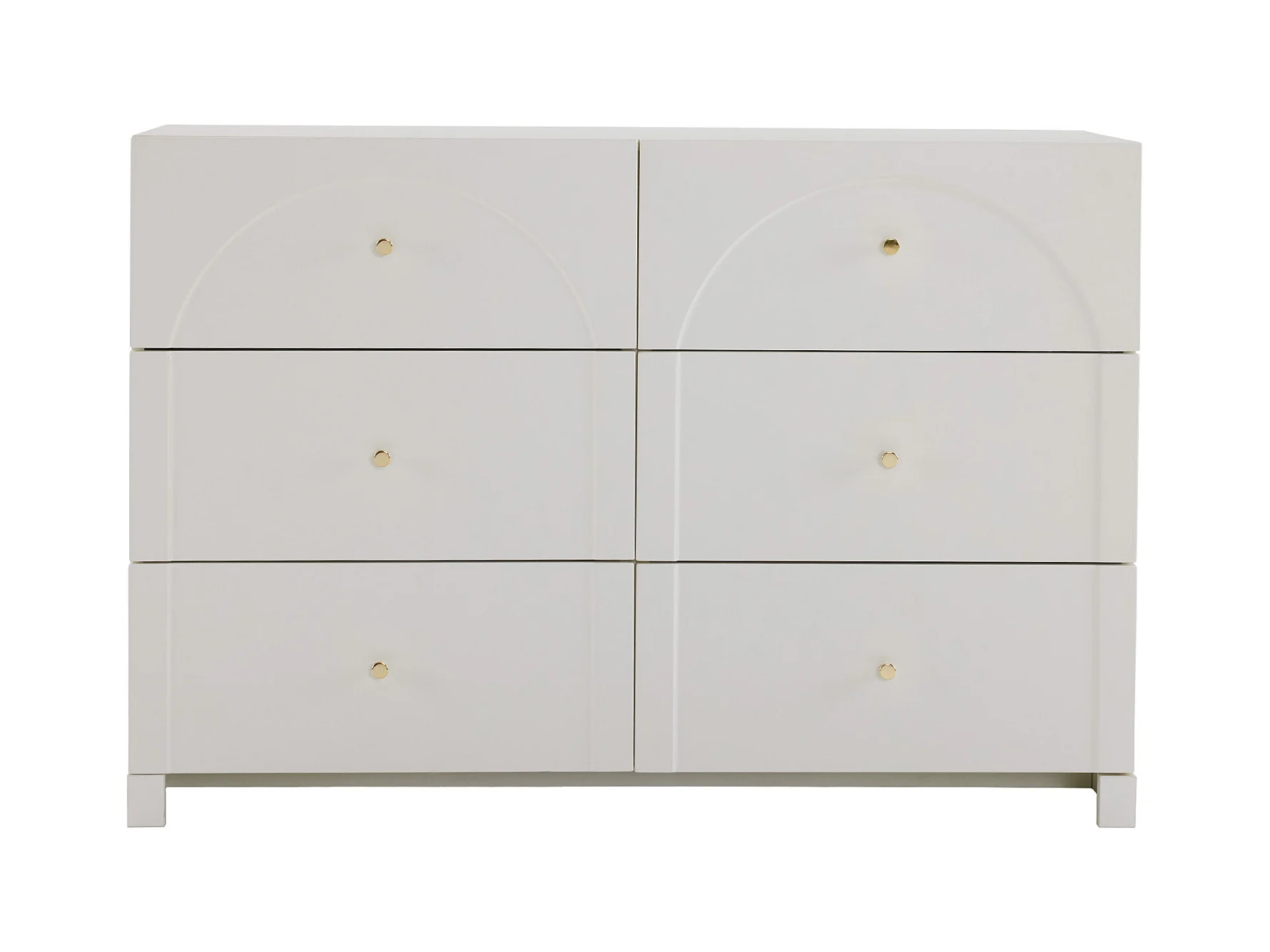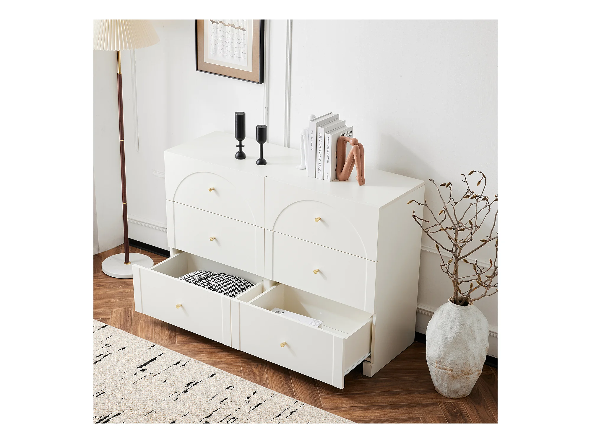 Commode blanche avec 6 tiroirs, poignées dorées , arches courbes