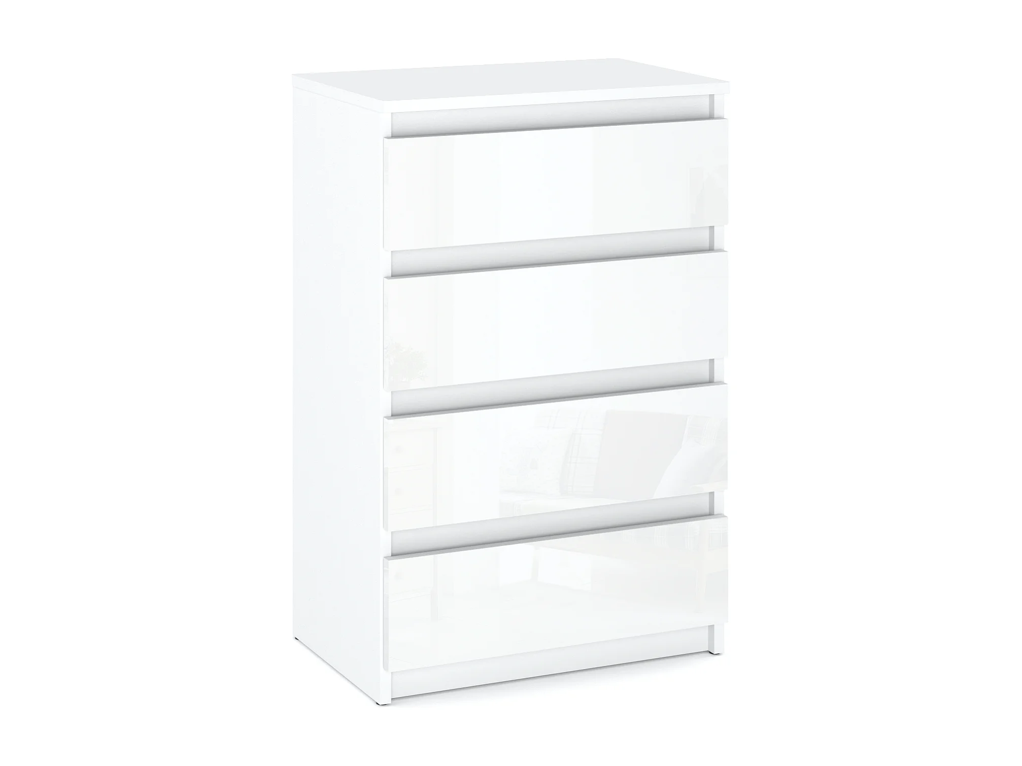 Commode blanche brillant 60 cm avec 4 tiroirs – meuble TV, mobilier pour salon et chambre LOFT