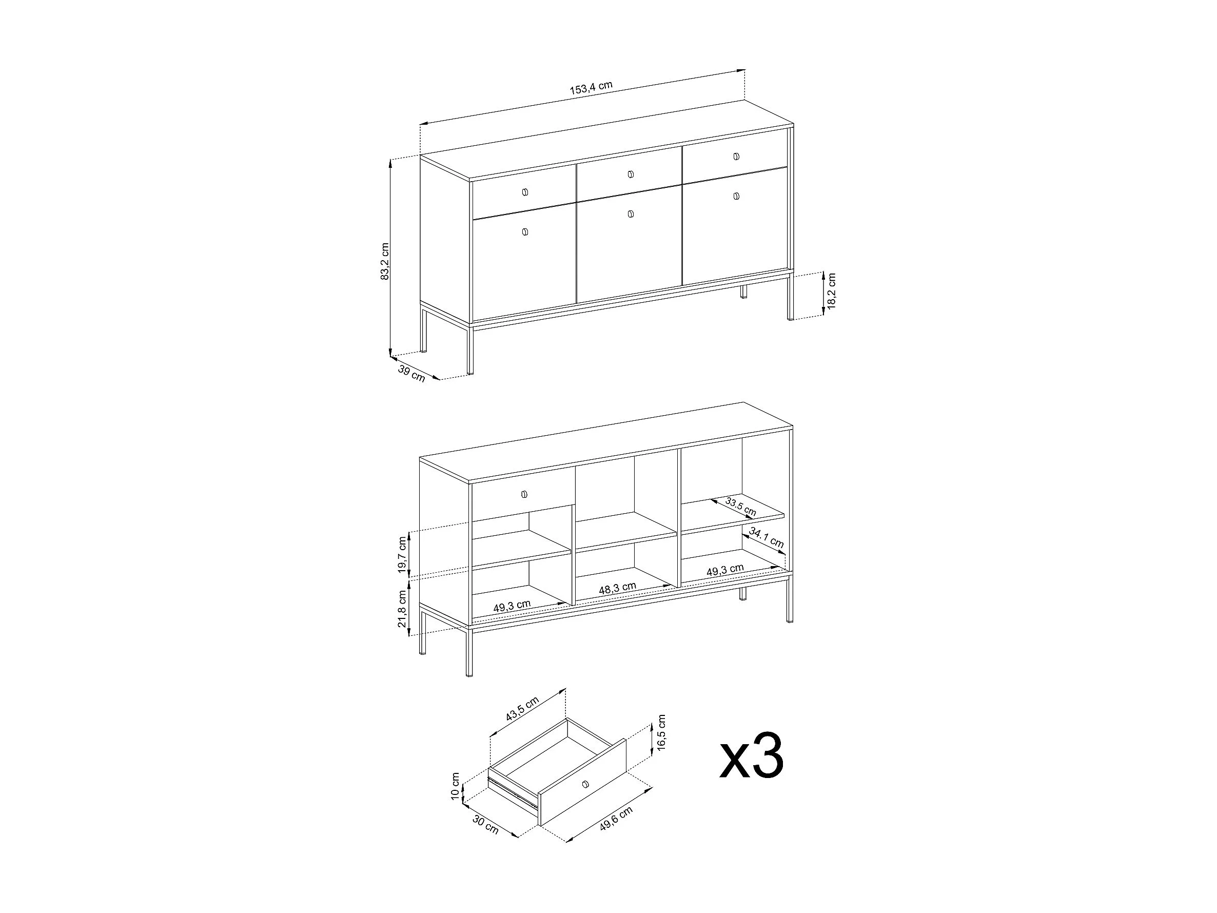 Commode : bleu marine, 153,4 x 83 x 39 cm, pieds noires