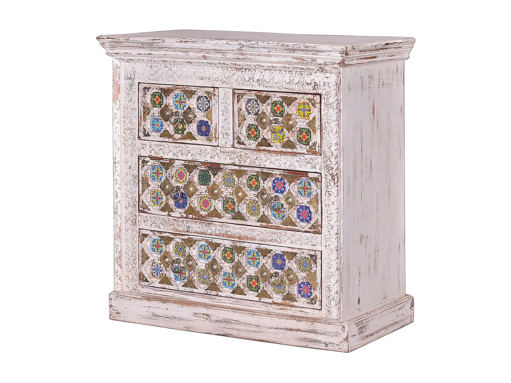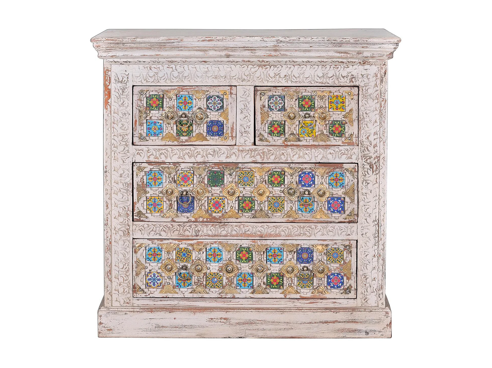 Corvo - Commode 7 tiroirs 1 niche en bois L120xH90cm - Blanc